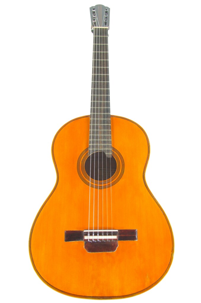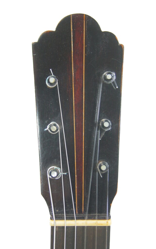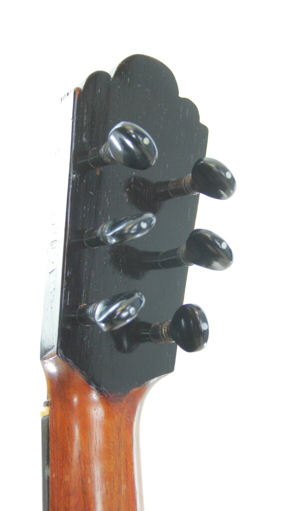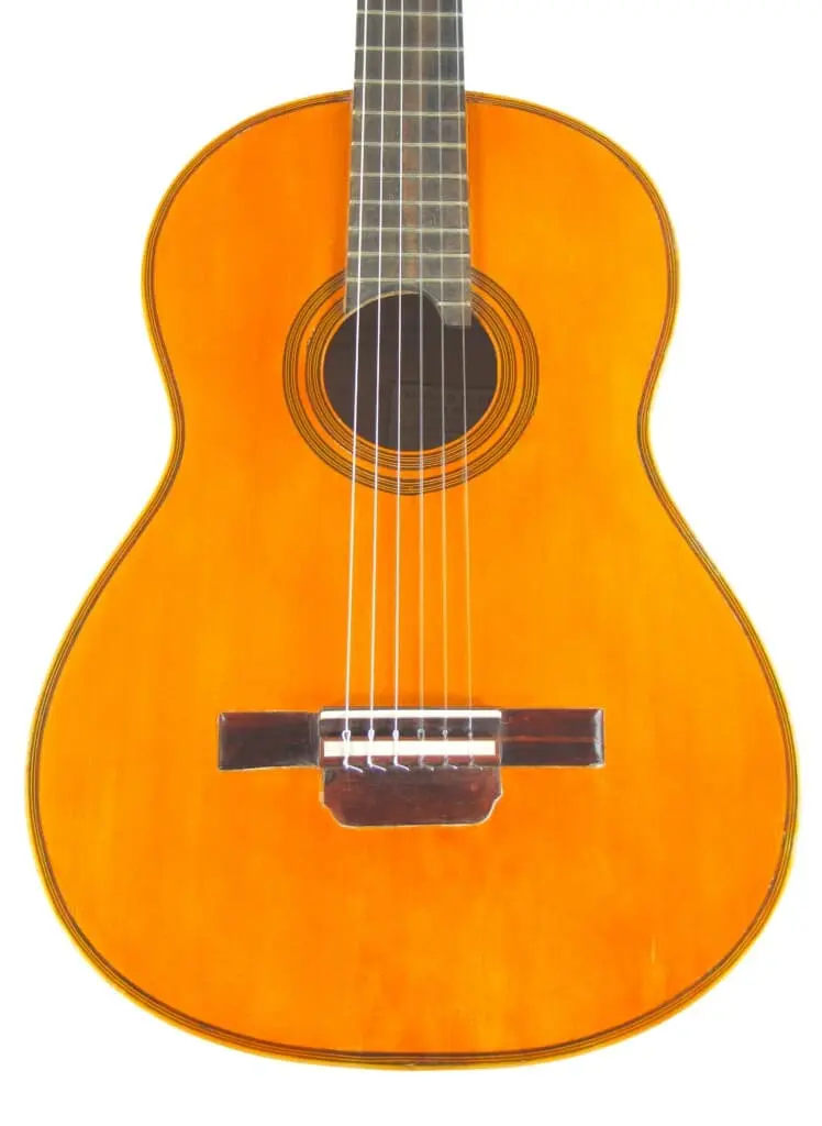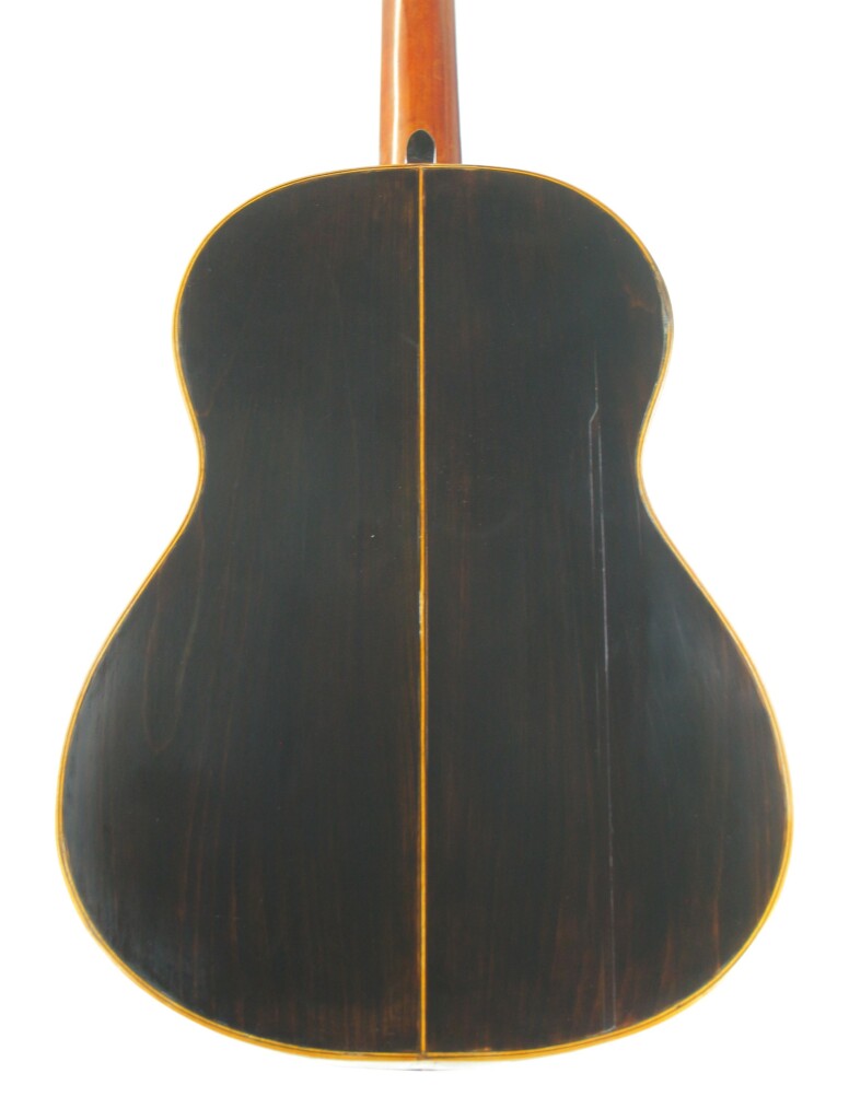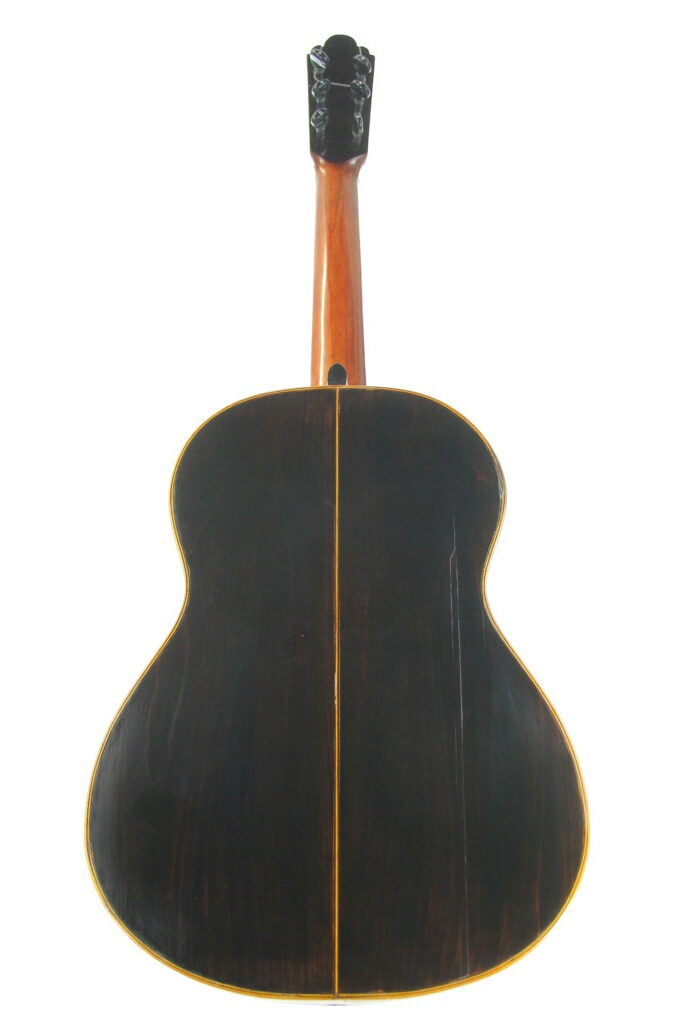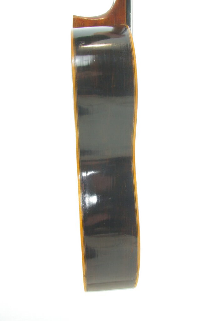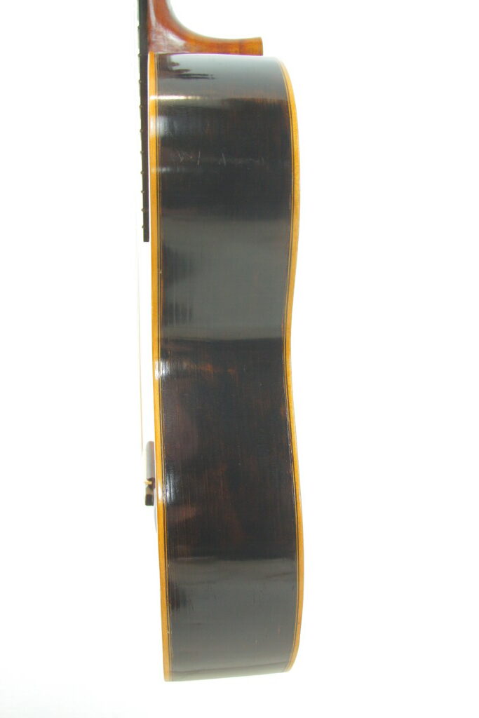 Es gibt einen professionell reparierten Riss auf dem Boden, der stabil ist. Insgesamt ist die Gitarre in einem guten Zustand. Sie hat eine Mensurlänge von 667 mm und eine Sattelbreite von 49 mm.