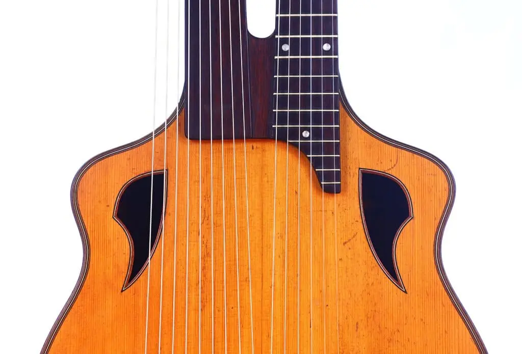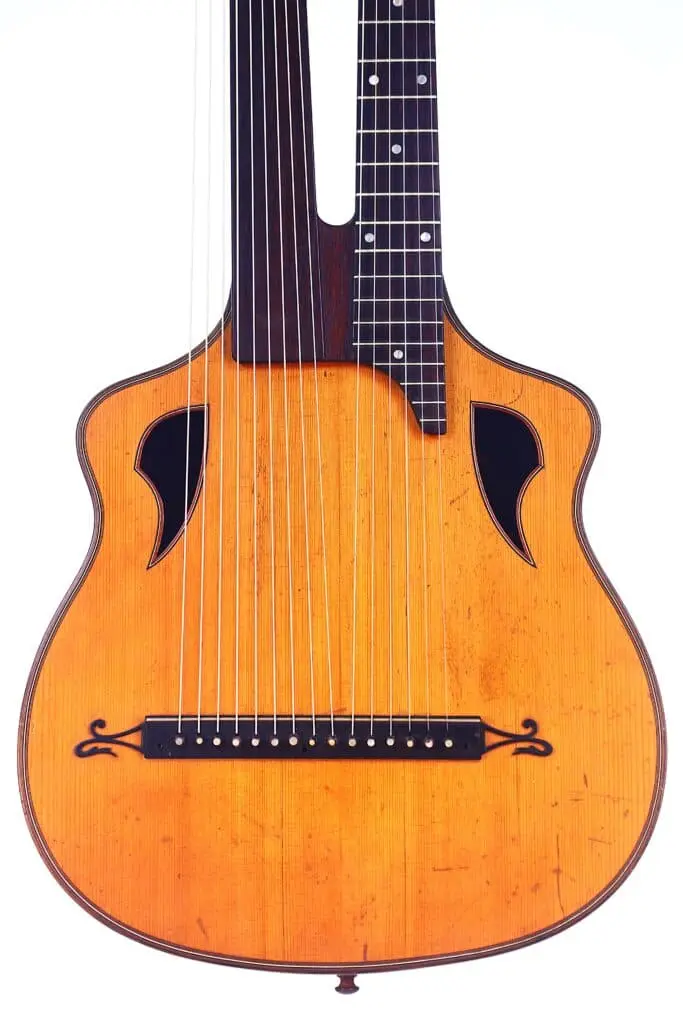 Joseph Christoph Fischer ~1920 – Joseph Christoph Fischer Kontragitarre – Wappengitarre um 1920 – Ein Meisterinstrument der Wiener Tradition