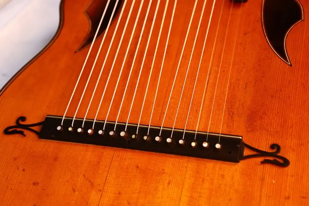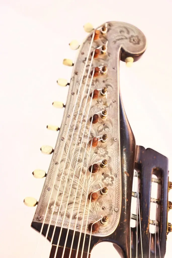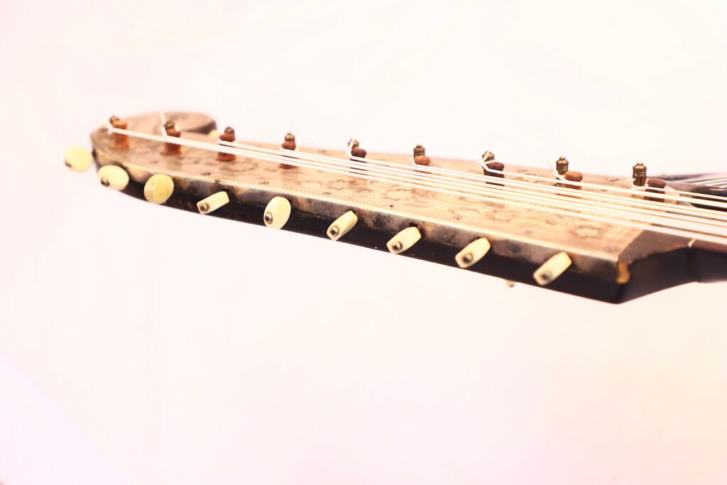 Eine seltene und faszinierende Kontragitarre, die sowohl für Sammler historischer Instrumente als auch für aktive Musiker ein wahres Juwel darstellt.