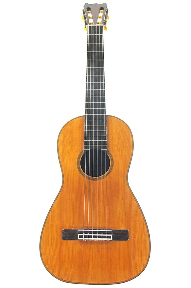 Ursprünglich war diese Gitarre ein 12-saitiges (doppelchöriges) Instrument. Während der Jahrhundertwende waren diese nicht mehr populär und wie viele Instrumente wurde auch dieses zu einer 6-saitigen Gitarre umgebaut. Die Kopfplatte wurde angepasst und die Gitarre erhielt ein neues Griffbrett und einen neuen Steg. Alle Risse wurden repariert und bei all dem wurde darauf geachtet, den Klang und die Bespielbarkeit auf höchstem Niveau zu halten.