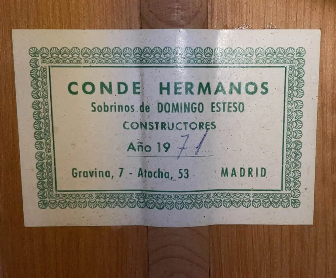 Conde Hermanos sind nicht einfach nur Gitarrenbauer wie andere, nein, sie haben wahrscheinlich Flamenco-Geschichte geschrieben wie kein anderer. Die drei Brüder Faustino, Julio und Mariano begannen, Gitarren für Domingo Esteso zu bauen. Er war der große Meister, Kopf und Ausbilder in ihren Anfangsjahren.