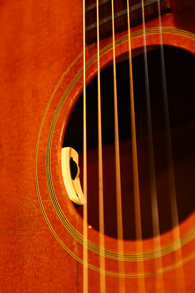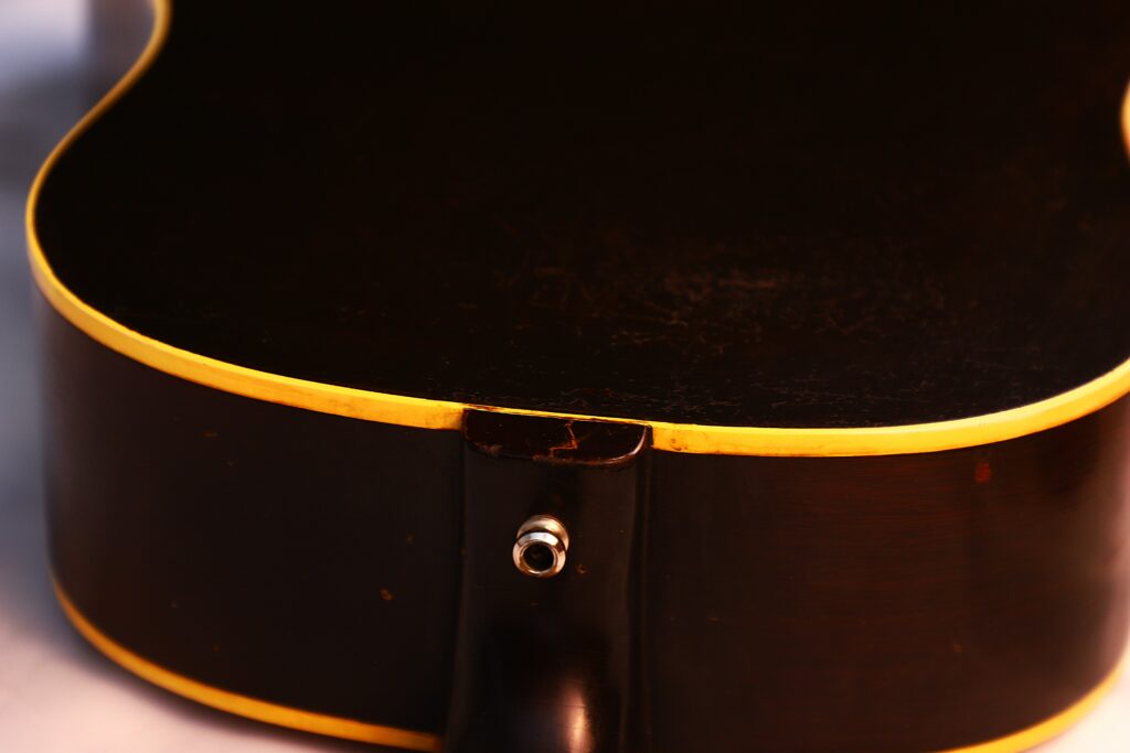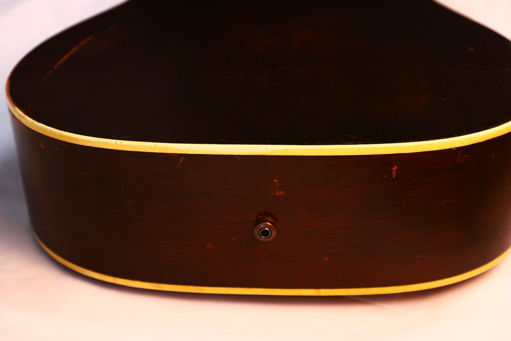 Diese Gitarre ist ein Instrument für Spieler, nicht für Sammler – sie hat über die Jahre einige Reparaturen erfahren, und der Boden wurde mit einem leichten Overspray behandelt. Wir haben sie sorgfältig überprüft und sichergestellt, dass sie strukturell solide und absolut bühnenbereit ist. Ein Neck Reset wurde durchgeführt, was für eine exzellente Bespielbarkeit, einen geraden Hals und eine niedrige Saitenlage sorgt. Zudem ist sie mit einem L.R. Baggs Anthem Pickup mit Schallloch-Reglern ausgestattet, was sie sowohl für akustische als auch verstärkte Performances ideal macht.