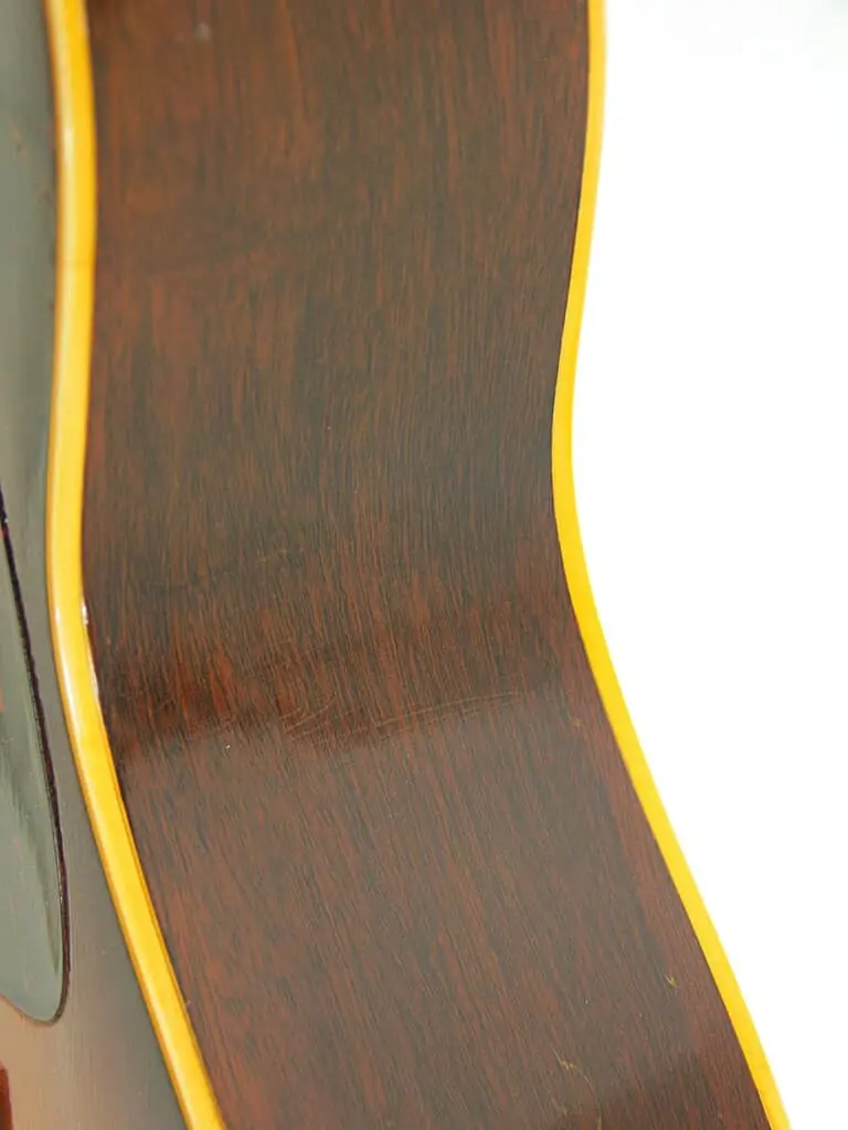 Sie spielt sich sehr leicht mit einem geraden Hals und guten Bünden. Sie hatte einen Hals-Reset und eine Neubundierung.