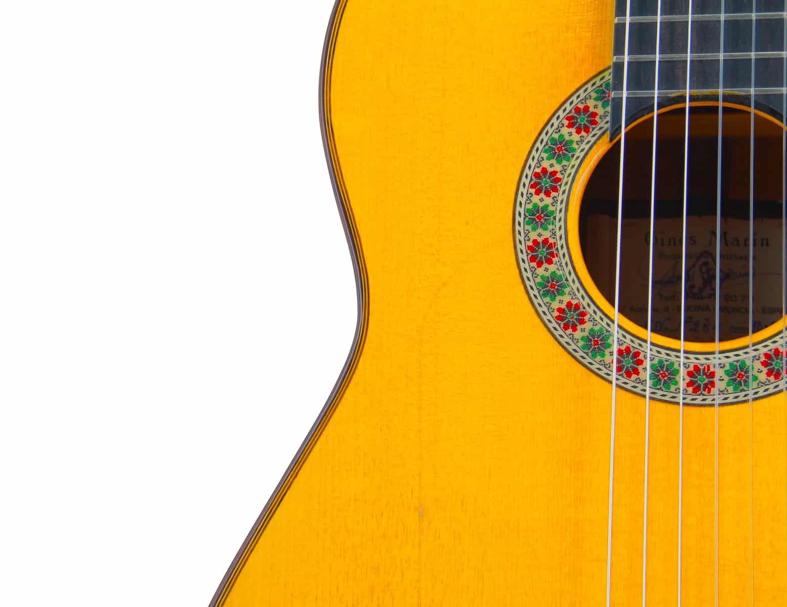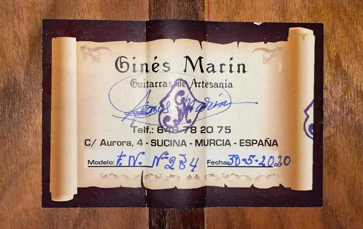 Dank der perfekten Auswahl der Hölzer, die Gines Marin für dieses Instrument verwendet hat, ist der Klang außergewöhnlich und bietet exquisite Kraft und Tiefe in den Bässen, zusammen mit kristallklaren und sauberen Höhen, sowie eine beeindruckende Balance und Projektionsfähigkeit.