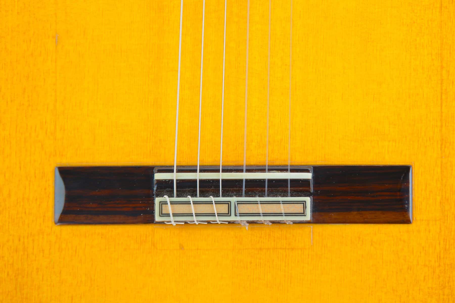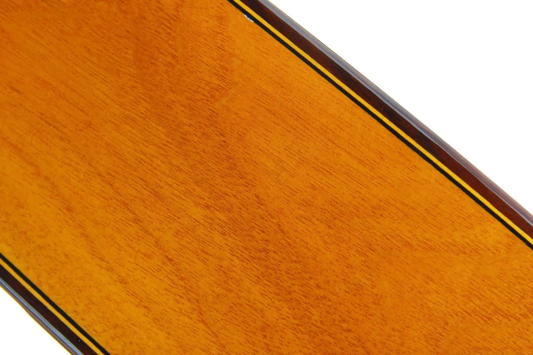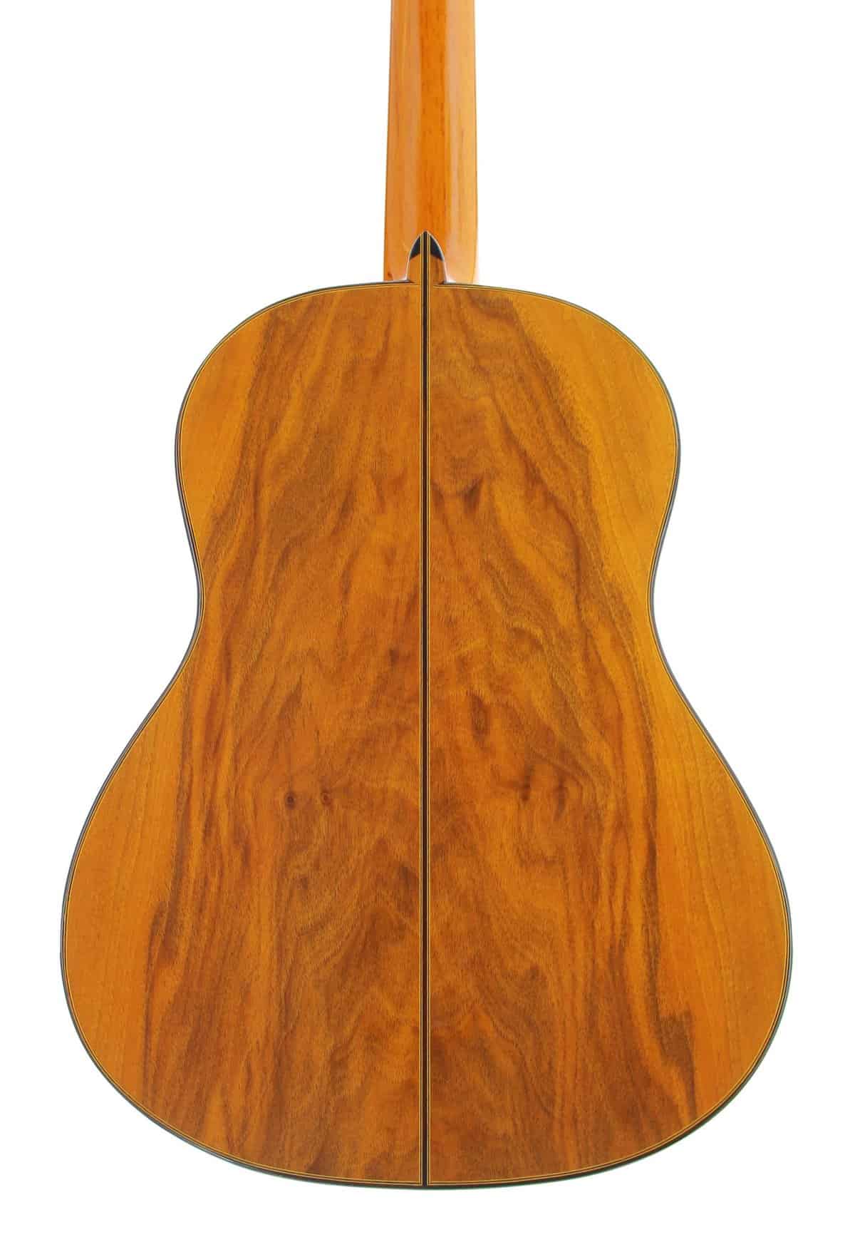 Diese Gitarre hat eine Fichtendecke und Boden/Zargen aus Walnuss. Die Mensur beträgt 650 mm und die Sattelbreite 52 mm.