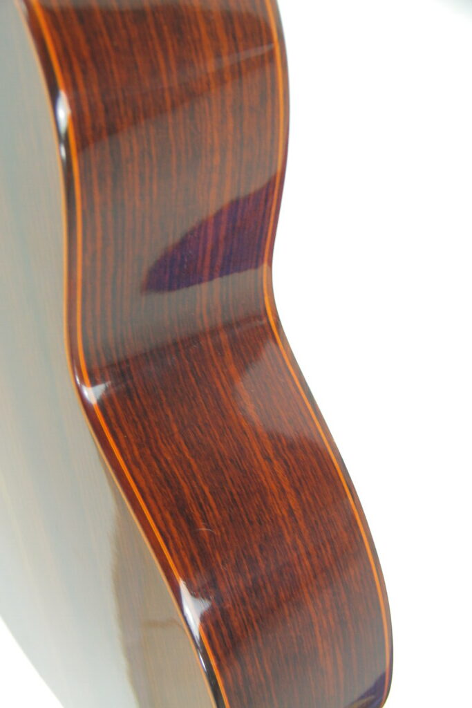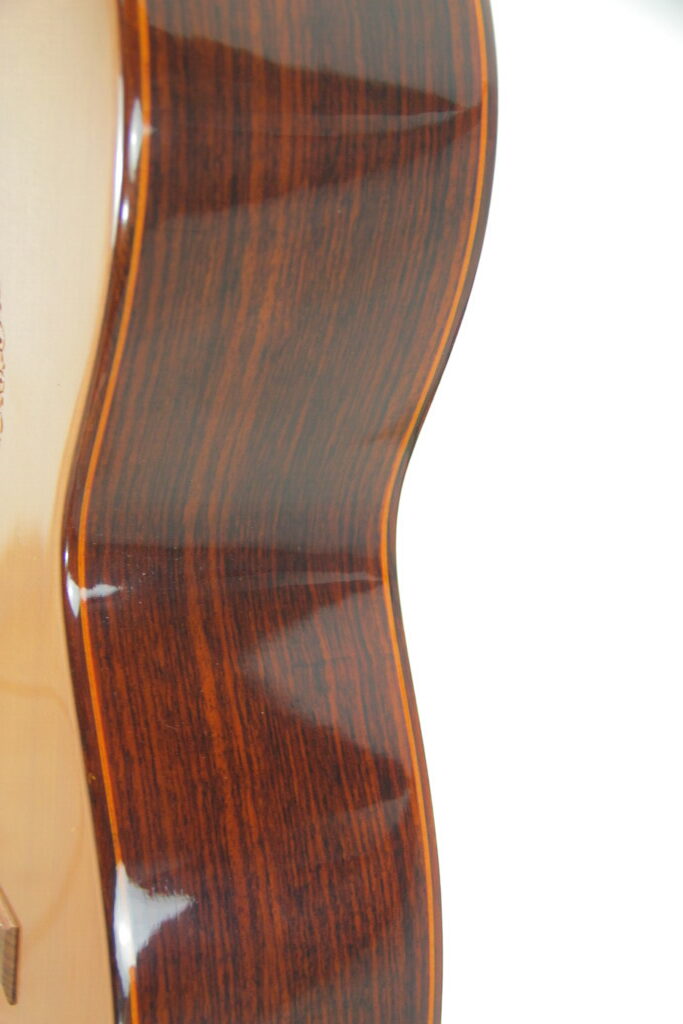 Zunächst einmal ist die Gitarre enorm kraftvoll und beeindruckt mit einem lang anhaltenden Sustain. Die Klangqualität kann als mystisch mit einer fast magischen Anziehungskraft beschrieben werden. Die Gitarre füllt den ganzen Raum mit den schönsten Tönen und beeindruckt mit einer atemberaubenden Vielfalt an Klangfarben. Ein absolut edles Instrument auf Konzertniveau – sehr fein gebaut für höchste klangliche Ansprüche.