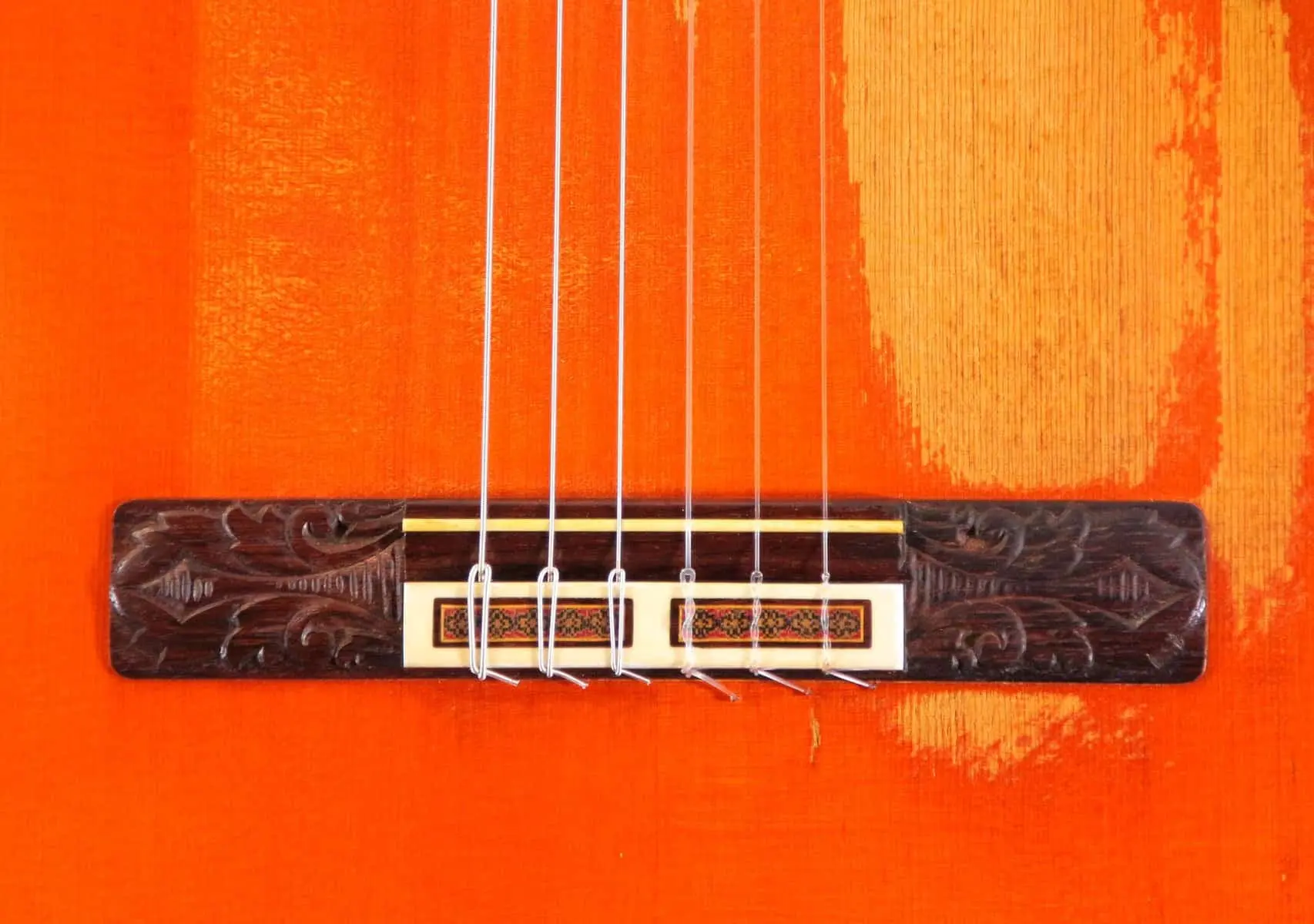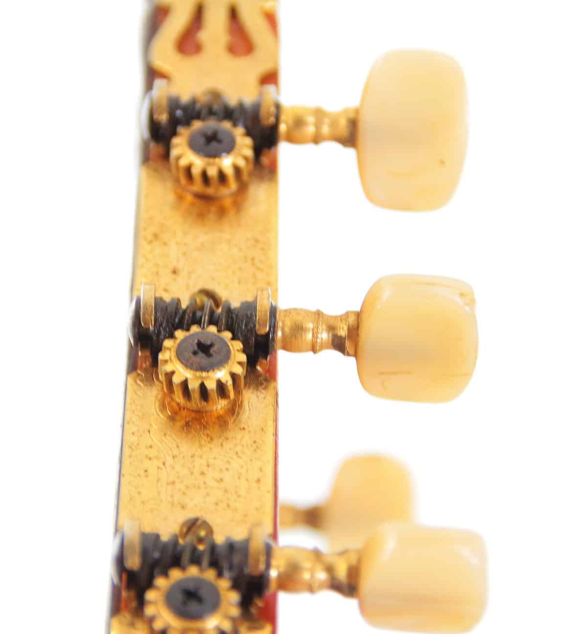 Seine exzellente Ausbildung in der Schreinerei und im Möbelbau hat sich auch in Penas Gitarren niedergeschlagen, man beachte nur die kunstvollen Holzarbeiten an Steg und Kopfplatte.