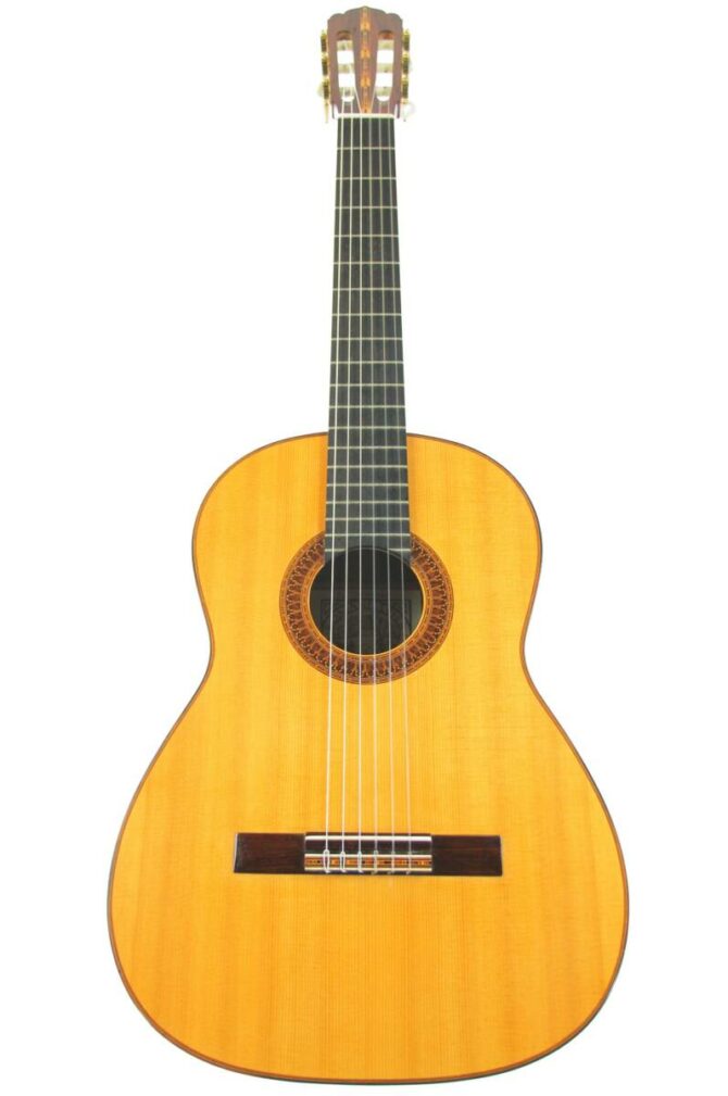 Der Boden besteht aus indischem Palisanderholz. Die Decke ist aus feiner sorgfältig ausgewählter Fichte. Die Mensur ist 650 mm und die Sattelbreite 52 mm.