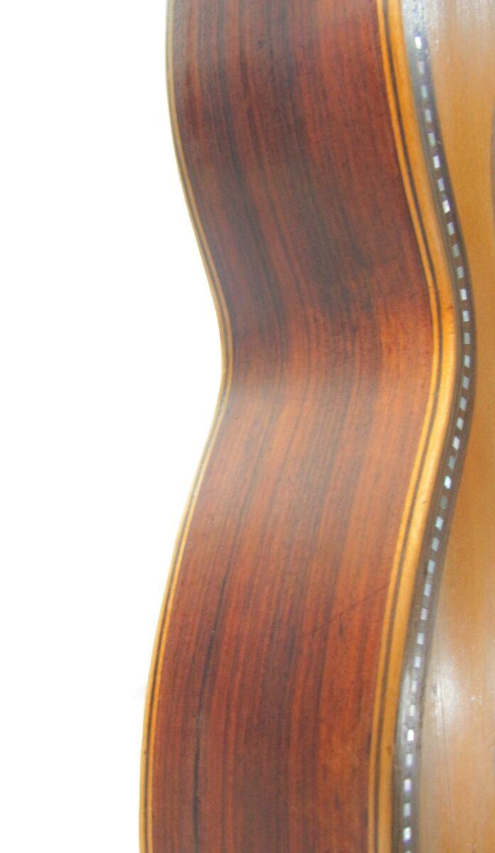 It has a fine spruce top and rosewood back and sides. The scale length is 640 mm and the nut witdth 50 mm.