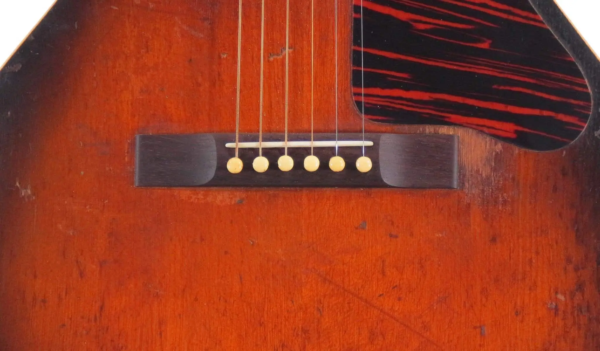 Diese Kalamazoo KG-14 befindet sich in einem für ihr Alter guten Zustand. Einige Risse wurden an Boden und Zargen repariert, während die Decke in gutem Zustand blieb. Die Gitarre hat einen Neckreset erhalten und spielt sich sehr gut, mit einer niedrigen Saitenlage. Sie hat eine coole Sunburst-Lackierung. Der Steg ist ein neuerer.