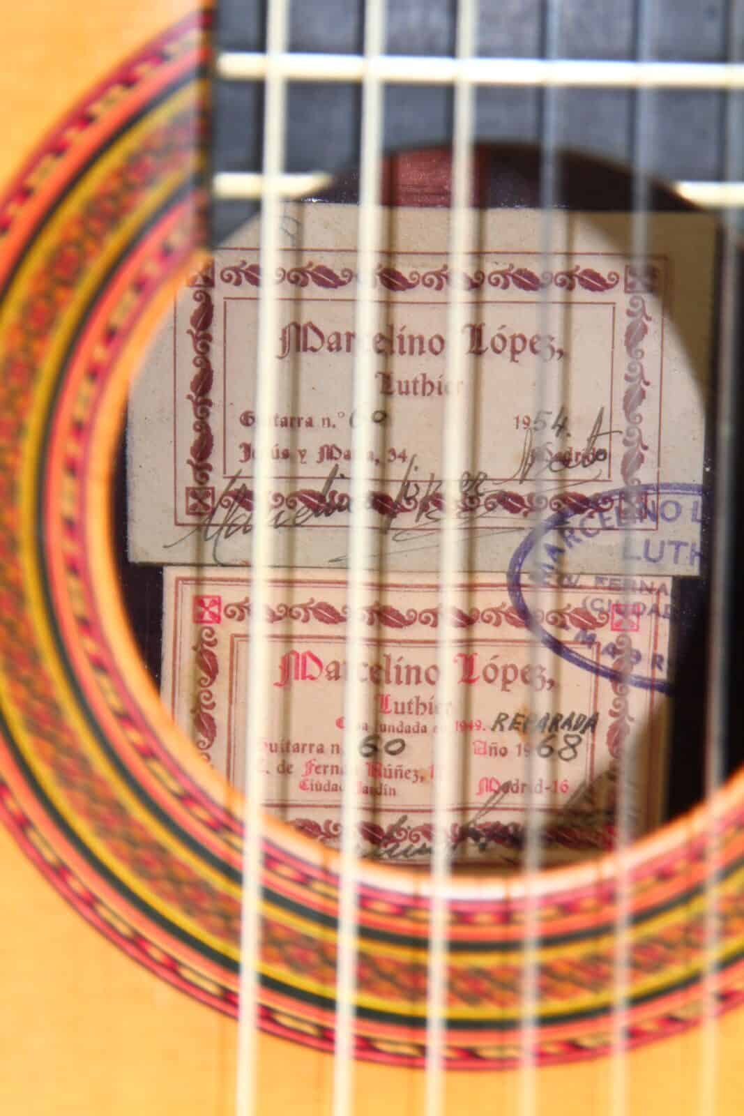 1968 wurde die Gitarre zur Reparatur in die Werkstatt von Marcelino Lopez Nieto zurückgebracht. Er führte sie durch und dokumentierte die Reparatur auf einem zweiten Etikett – wieder mit Unterschrift etc.