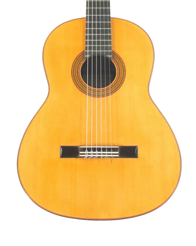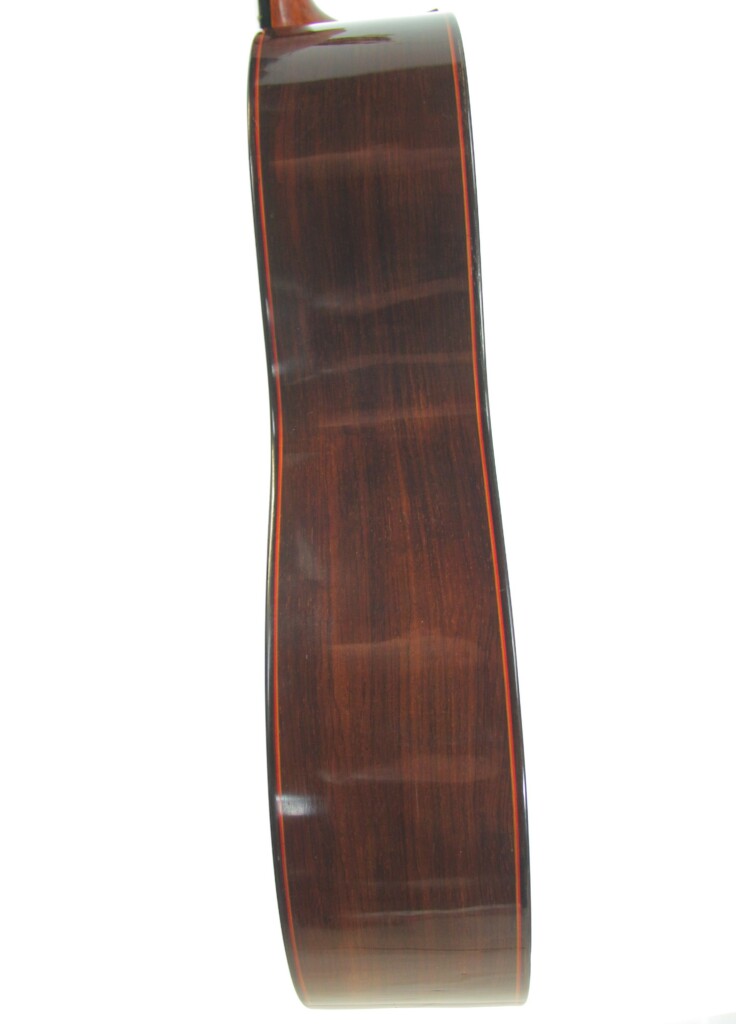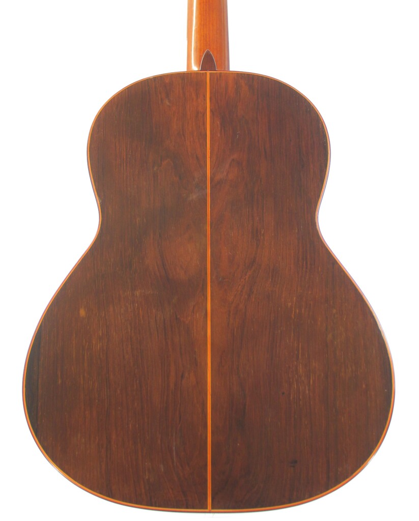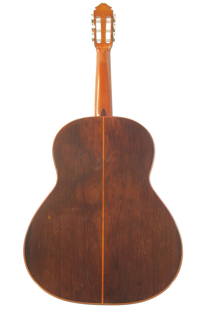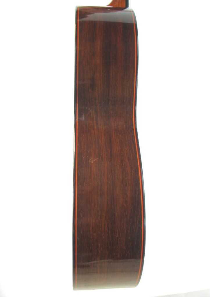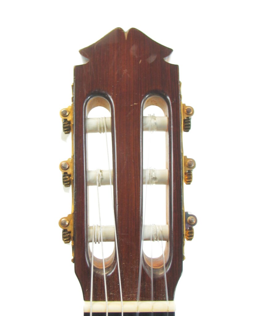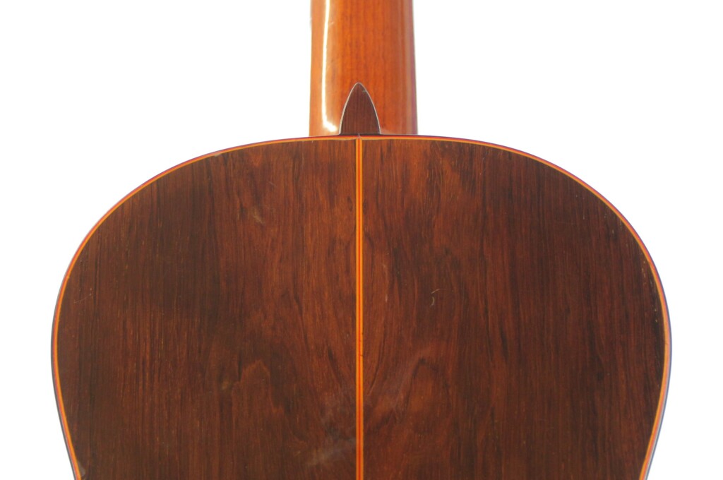 Diese Gitarre wurde 1954 hergestellt. Das Etikett ist signiert, datiert, gestempelt und nummeriert. Sie hat eine Fichtendecke und Palisander Boden und Zargen. Die Mensur beträgt 660 mm und die Sattelbreite 52 mm.
