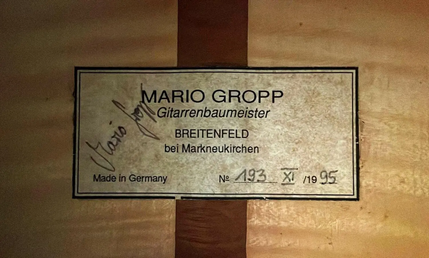 Mario Gropp Konzertgitarre aus dem Jahr 1995 – eine ganz besondere Gitarre mit großer klanglicher Dynamik. Gebaut im Stil einer Richard Jacob Weissgerber ist diese Gitarre ein echter Geheimtipp!