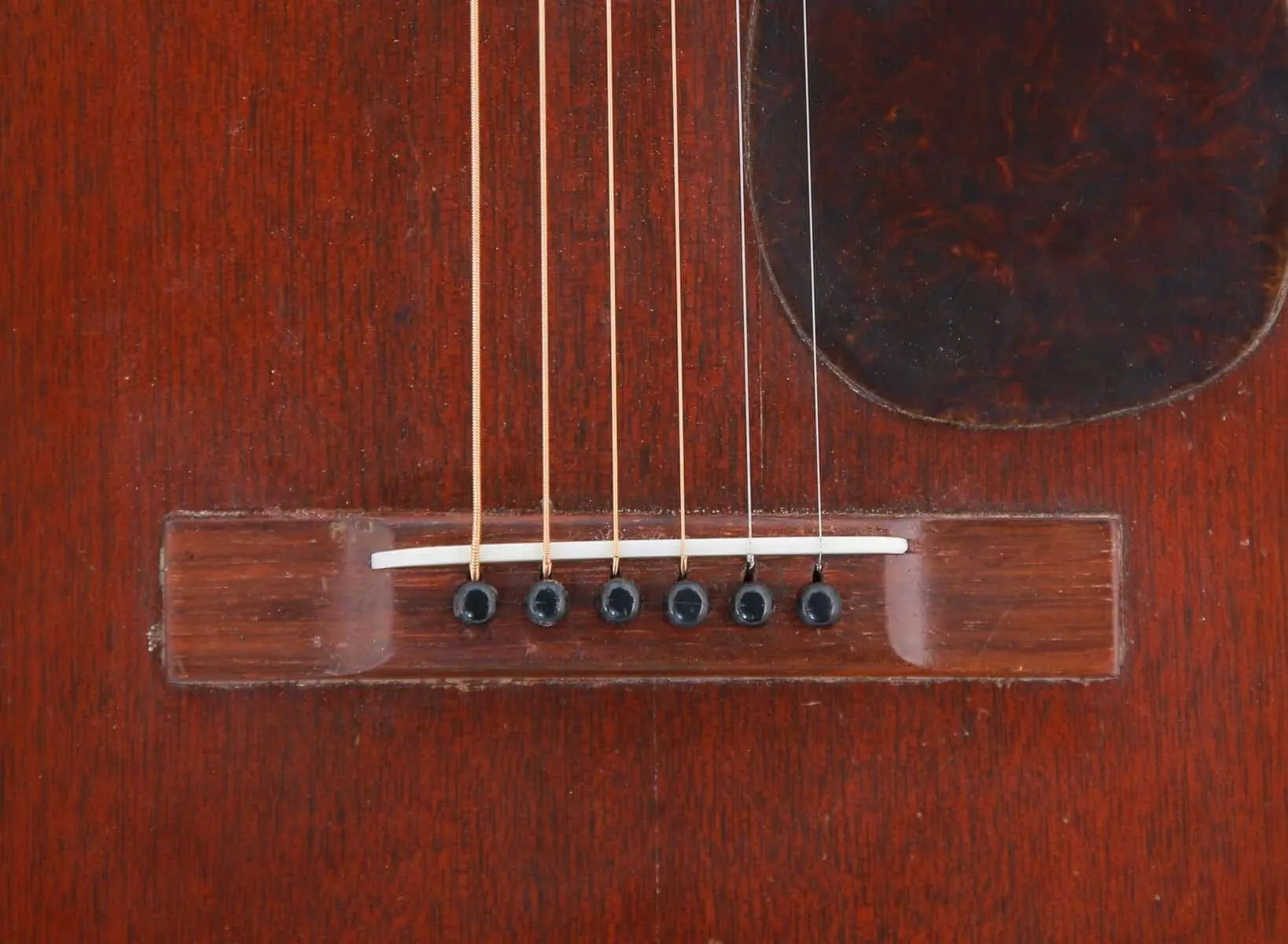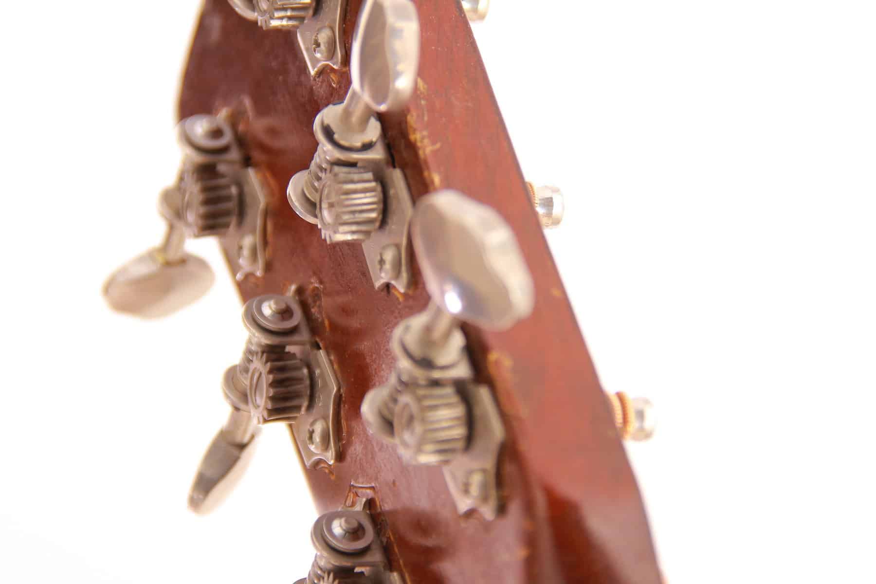 Diese Gitarre weist einige Gebrauchsspuren auf und hat auch kleinere ältere Reparaturen. Sie hat einen Neck-Reset erhalten und spielt sich sehr gut den gesamten Hals hinunter.