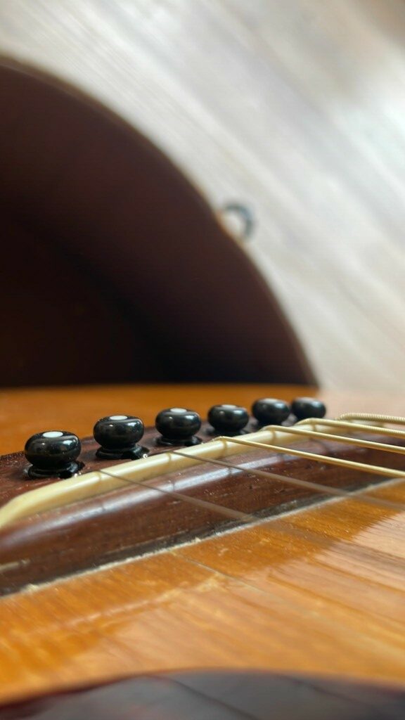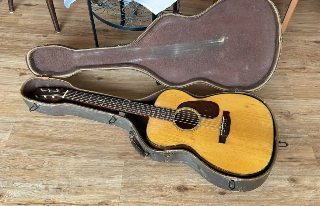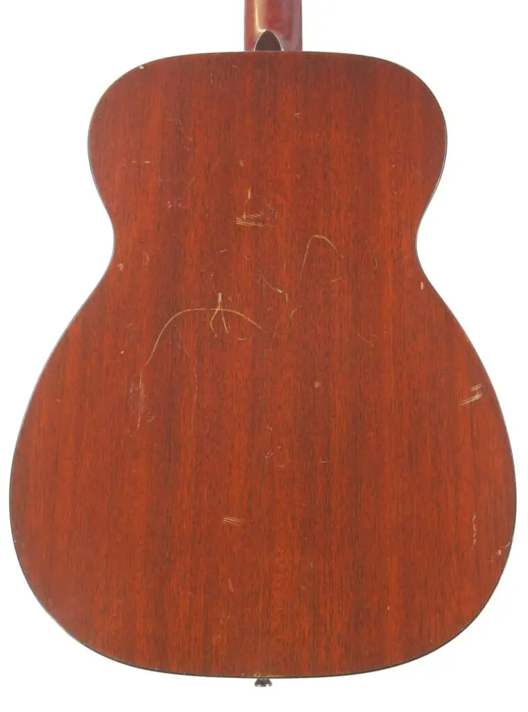 In dieser Zeit kurz nach dem Krieg schuf Martin wunderbare Gitarren – die heute sehr begehrt sind. Es war eine Ära, in der die Gitarren ohne jegliche kommerzielle Rücksicht gebaut wurden … sie waren fein verbaut und verwendeten die feinsten Tonhölzer. Sie wurden in jeder Hinsicht vollständig von Hand gebaut. Schöne Mahagoni-Zargen und -Boden und eine sehr schöne Fichtendecke – macht diese Gitarre zu einer Kanone. Die Gitarren aus dieser Zeit gehören zum Feinsten, was Martin in all den Jahren produziert hat.