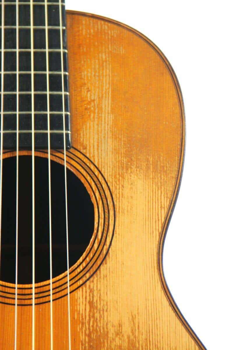 Wie jeder sich vorstellen kann, sind die ca. 160 Jahre natürliche Alterung dieser Gitarre spürbar. Diese kleine Gitarre hat einen beeindruckend schönen Klang, der sowohl kraftvoll als auch warm ist.