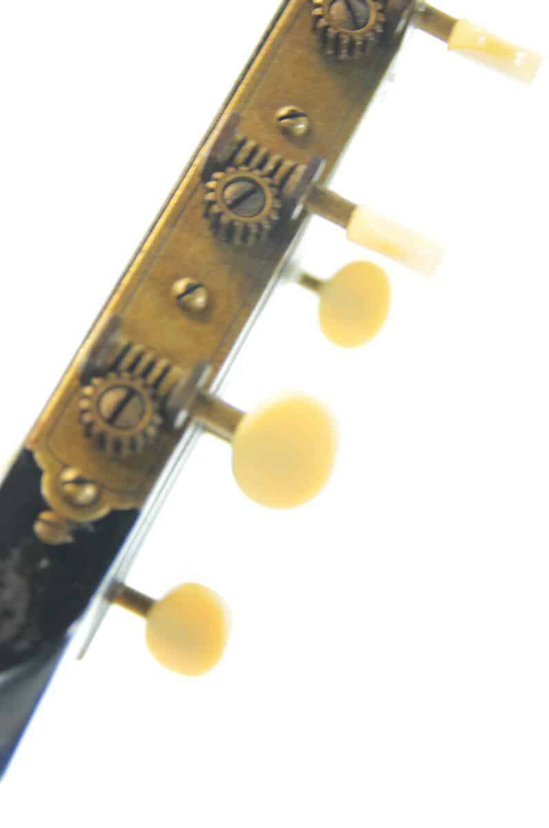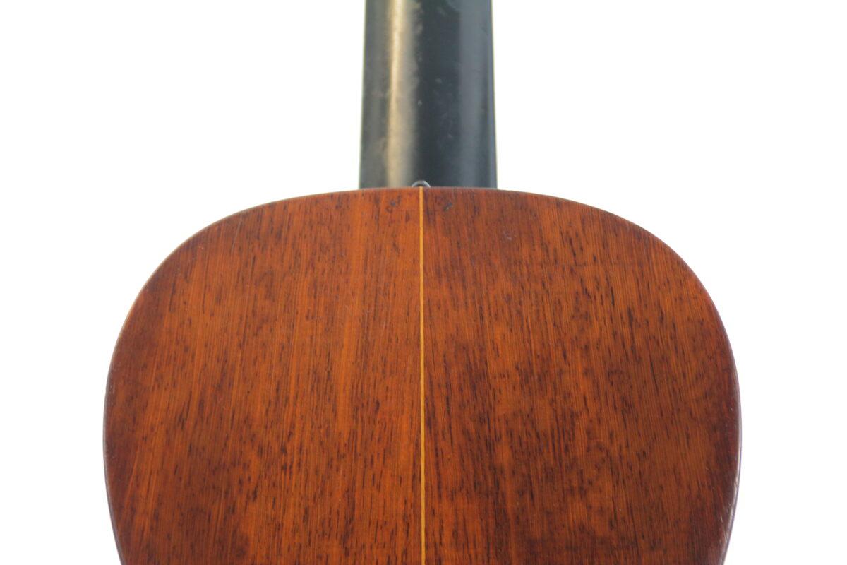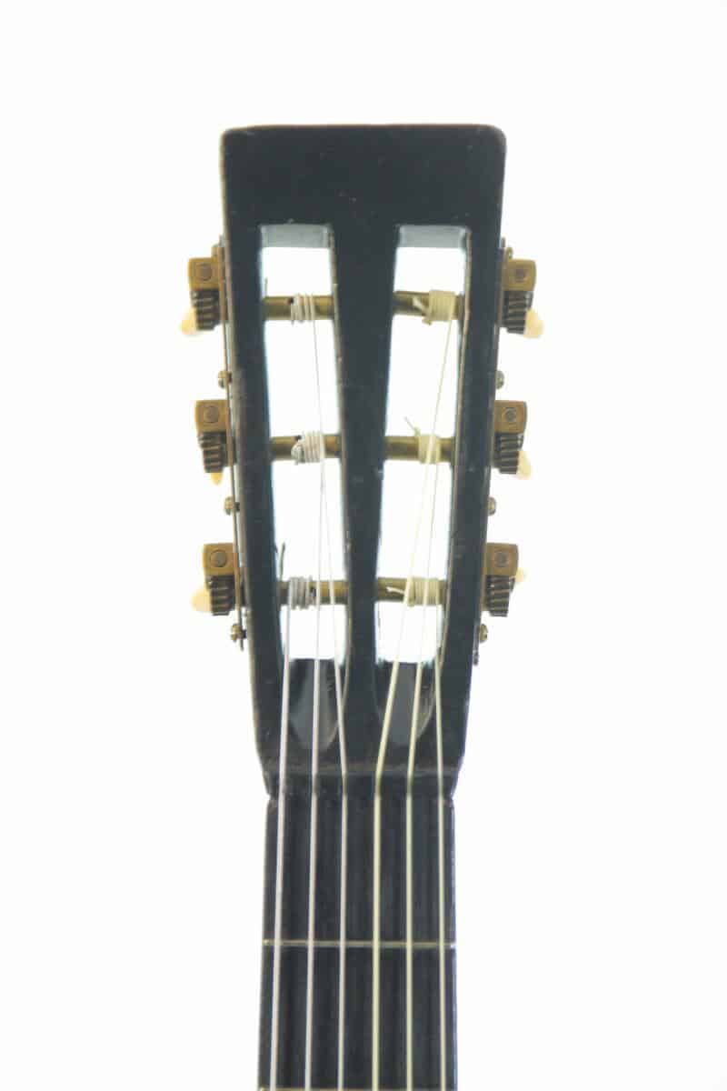 Diese Martin 2 1/2 – 17 ist für ihr Alter in einem guten Zustand. Sie hat sicherlich viele Geschichten erlebt, aber hat all die Jahre erstaunlich gut überstanden. Offensichtlich wurde einmal eine Neckreset gemacht – die Saitenlage ist sehr gut. Die ganze Gitarre wurde restauriert und hat einen neuen Steg.