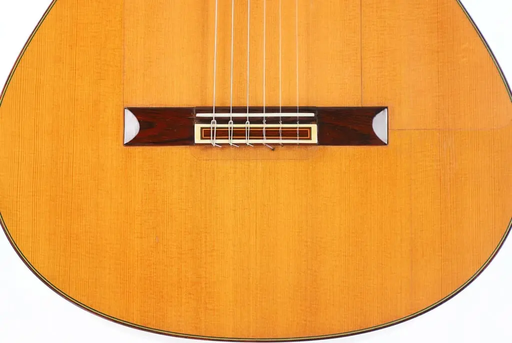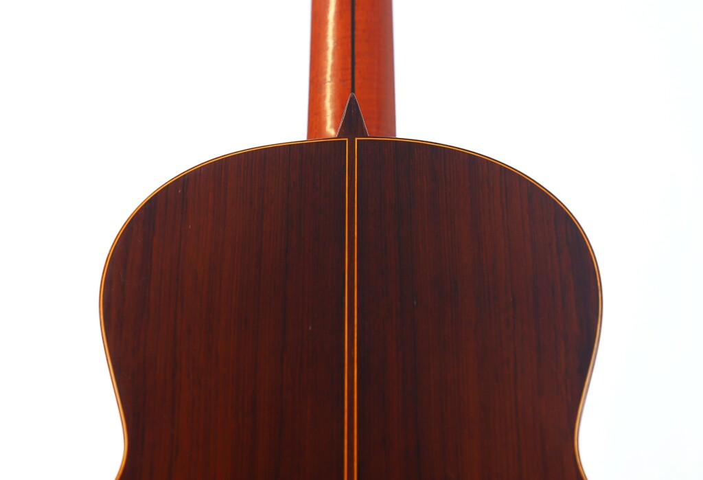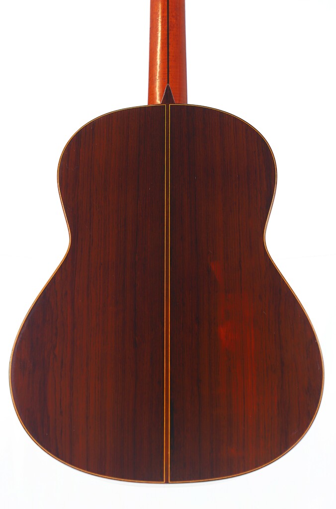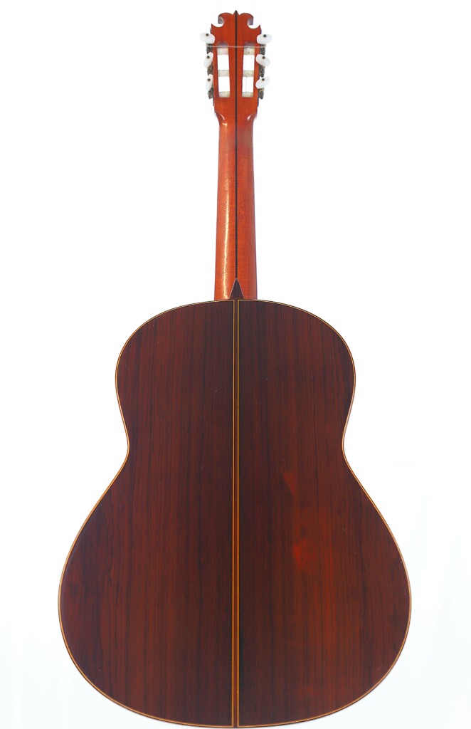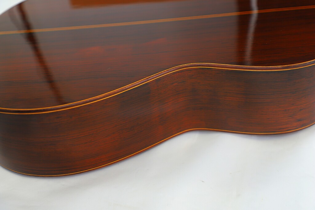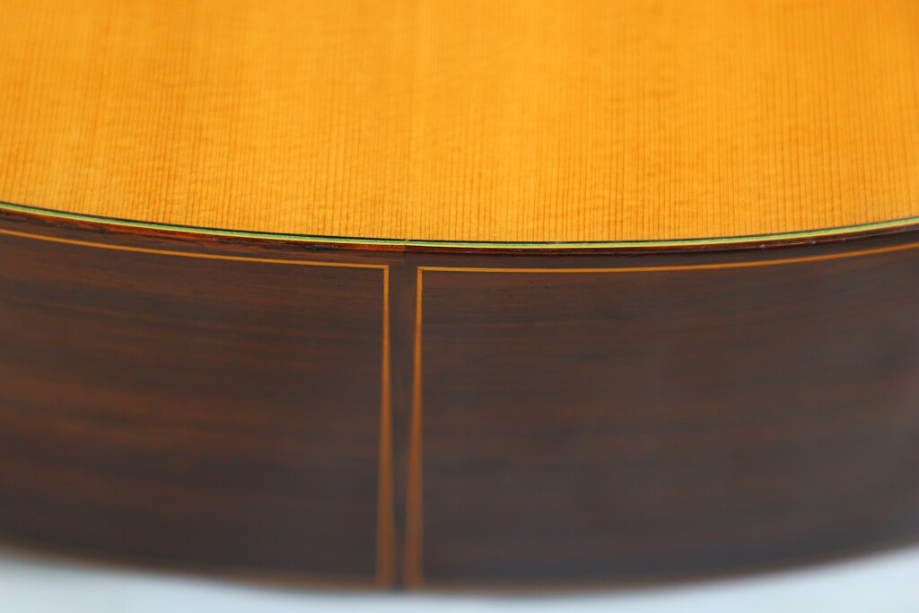 Der Klang ist reichhaltig und dennoch klar, durchdrungen von Wärme, Geheimnis und einem stimmungsvollen Charakter. Die Töne sind mit kontrollierten, ausgewogenen Obertönen unterlegt, die den kristallklaren Grundton ergänzen und eine kathedralenartige Resonanz schaffen. Diese Gitarre liefert bemerkenswerte Kraft, die ausreicht, um jeden Konzertsaal zu füllen, und konkurriert mit Instrumenten, die zwei- bis dreimal so viel kosten.