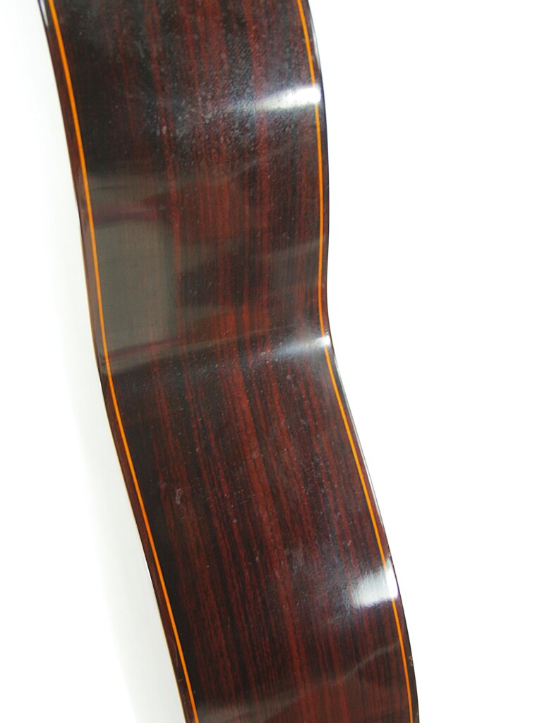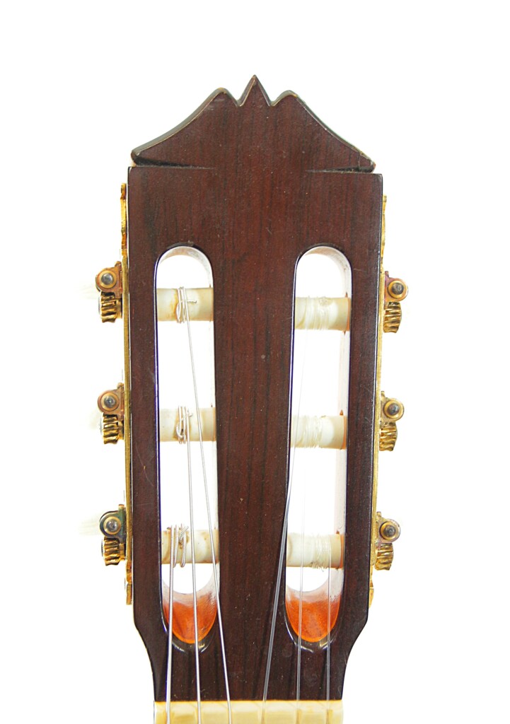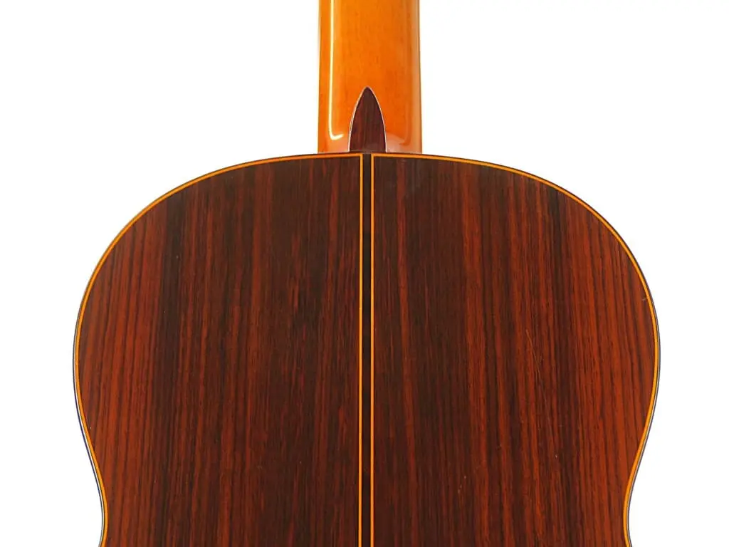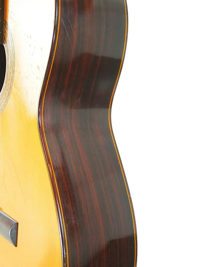 Die Gitarre hat eine Mensur von 650 mm und eine Sattelbreite von 52 mm. Sie hat eine feine Fichtendecke und einen Palisander-Boden und -Zargen.