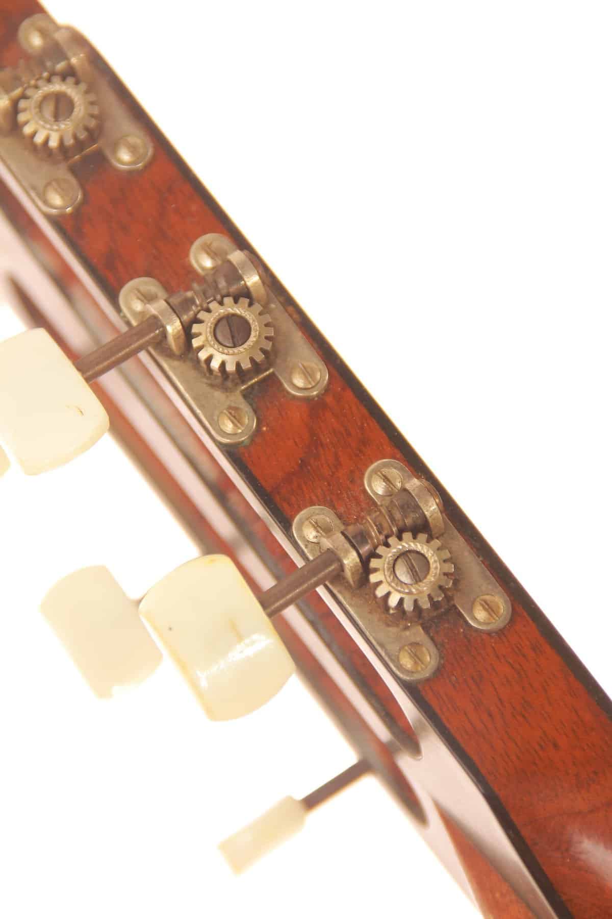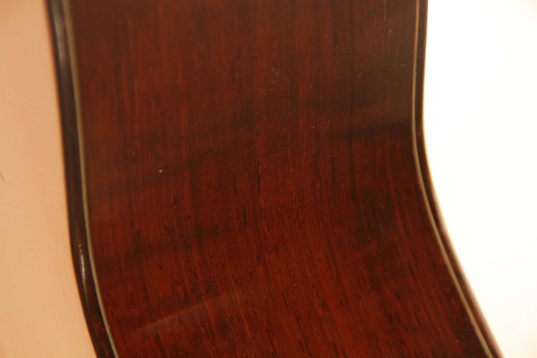 Die Gitarre ist wunderbar leicht und hat einen lockeren und spontanen Anschlag. Die Decke aus deutscher Fichte spricht sehr gut an und die letzten neunzig Jahre des Spielens haben dieser Gitarre einen kraftvollen und farbenreichen Ton verliehen.