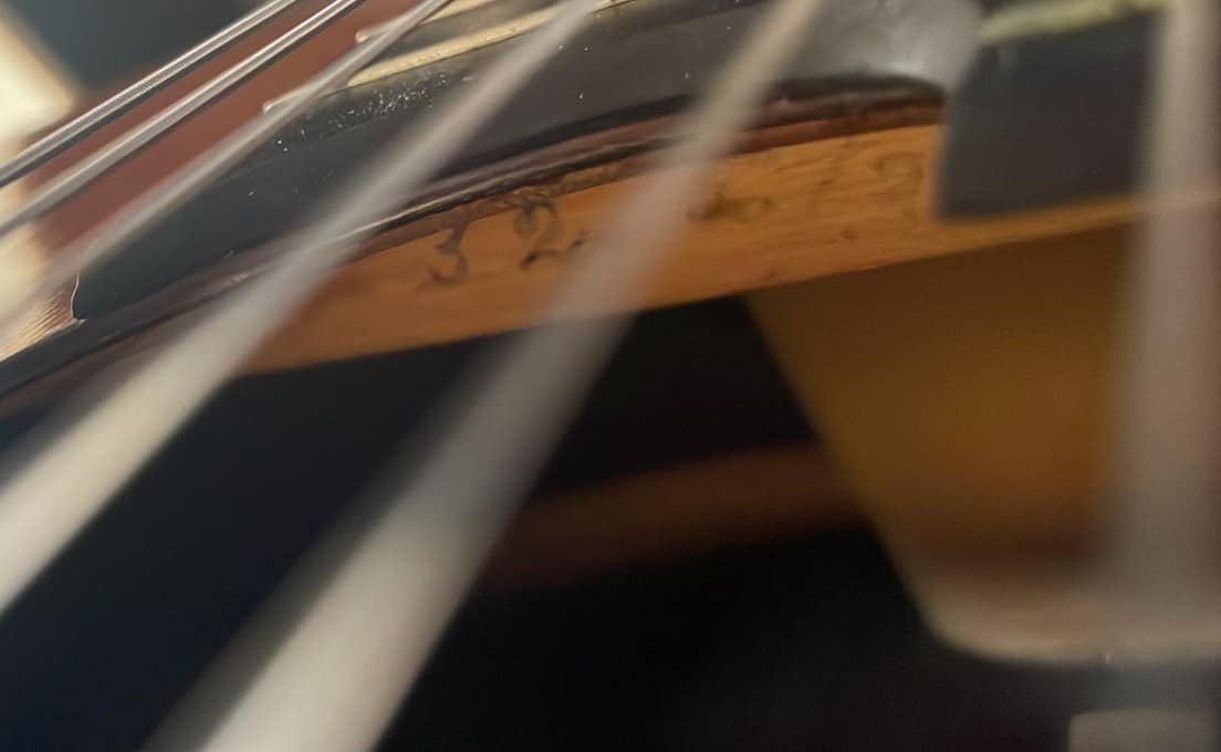 Der Erhaltungszustand dieses Instruments ist außerordentlich gut. Lediglich auf dem Boden wurde ein feiner Riss professionell repariert.