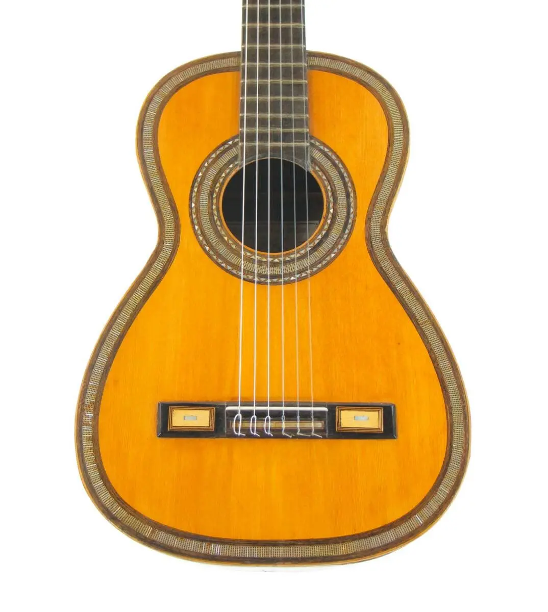 Die Hölzer sind natürlich nach mehr als 120 Jahren wunderbar gereift und erzeugen einen unglaublich schönen Vintage-Sound. Die Gitarre spricht sofort an und hat eine tolle Dynamik.