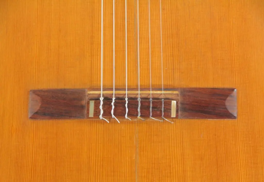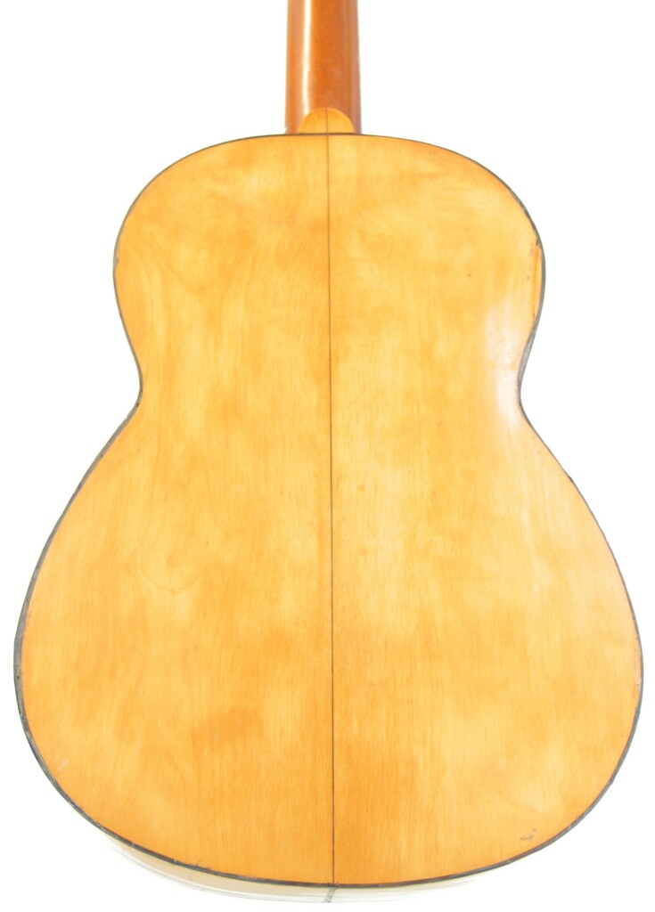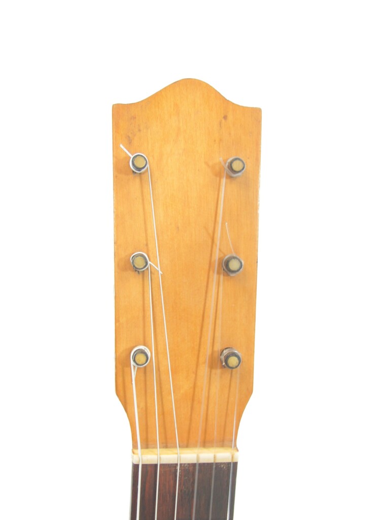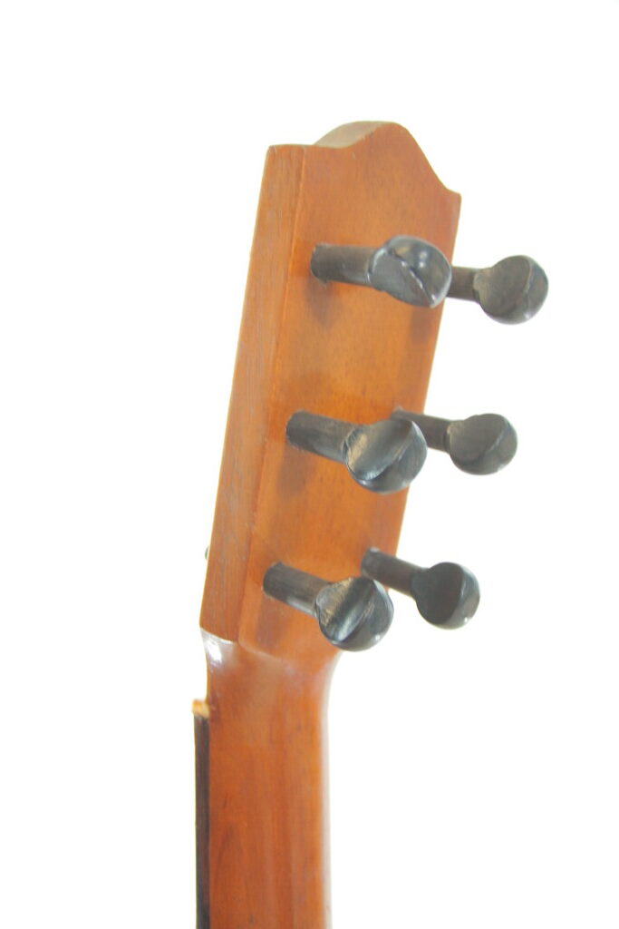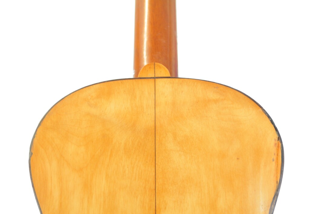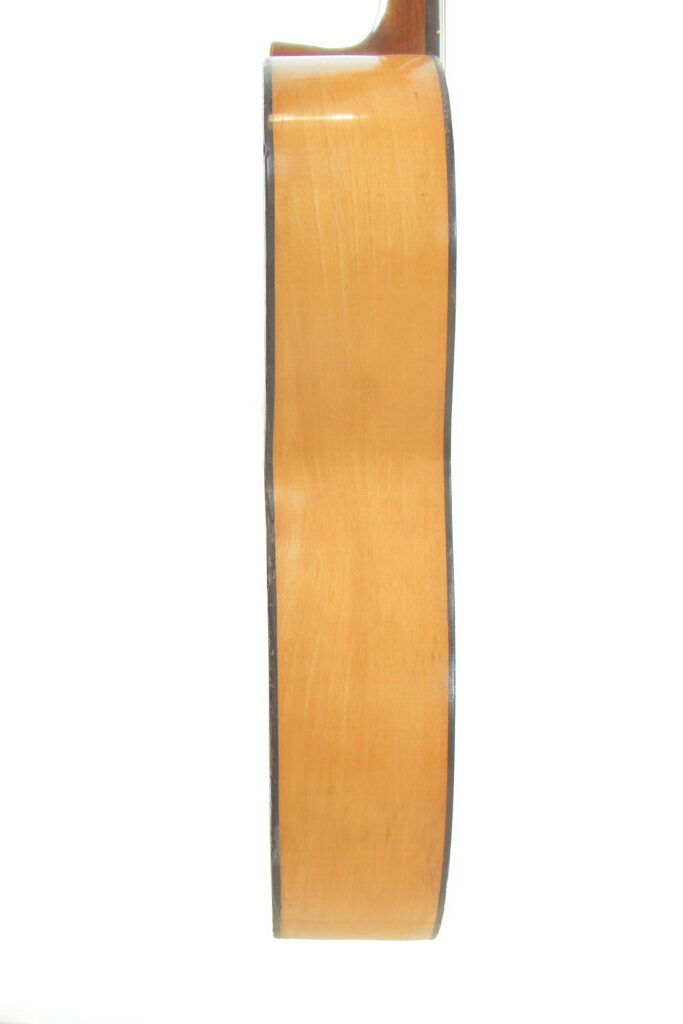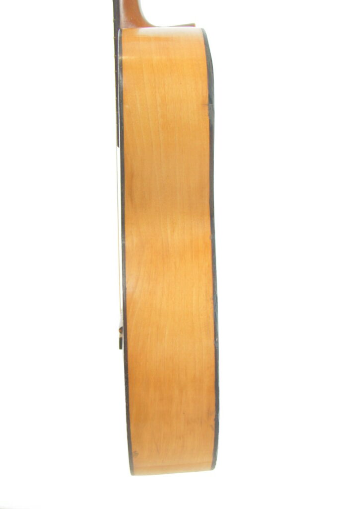 Die Gitarre ist in einem restaurierten und gut spielbaren Zustand. Die Mensurlänge beträgt 610 mm und die Sattelbreite 50 mm. Die Decke ist aus feiner Alpenfichte und der Boden und die Zargen aus Ahorn.
