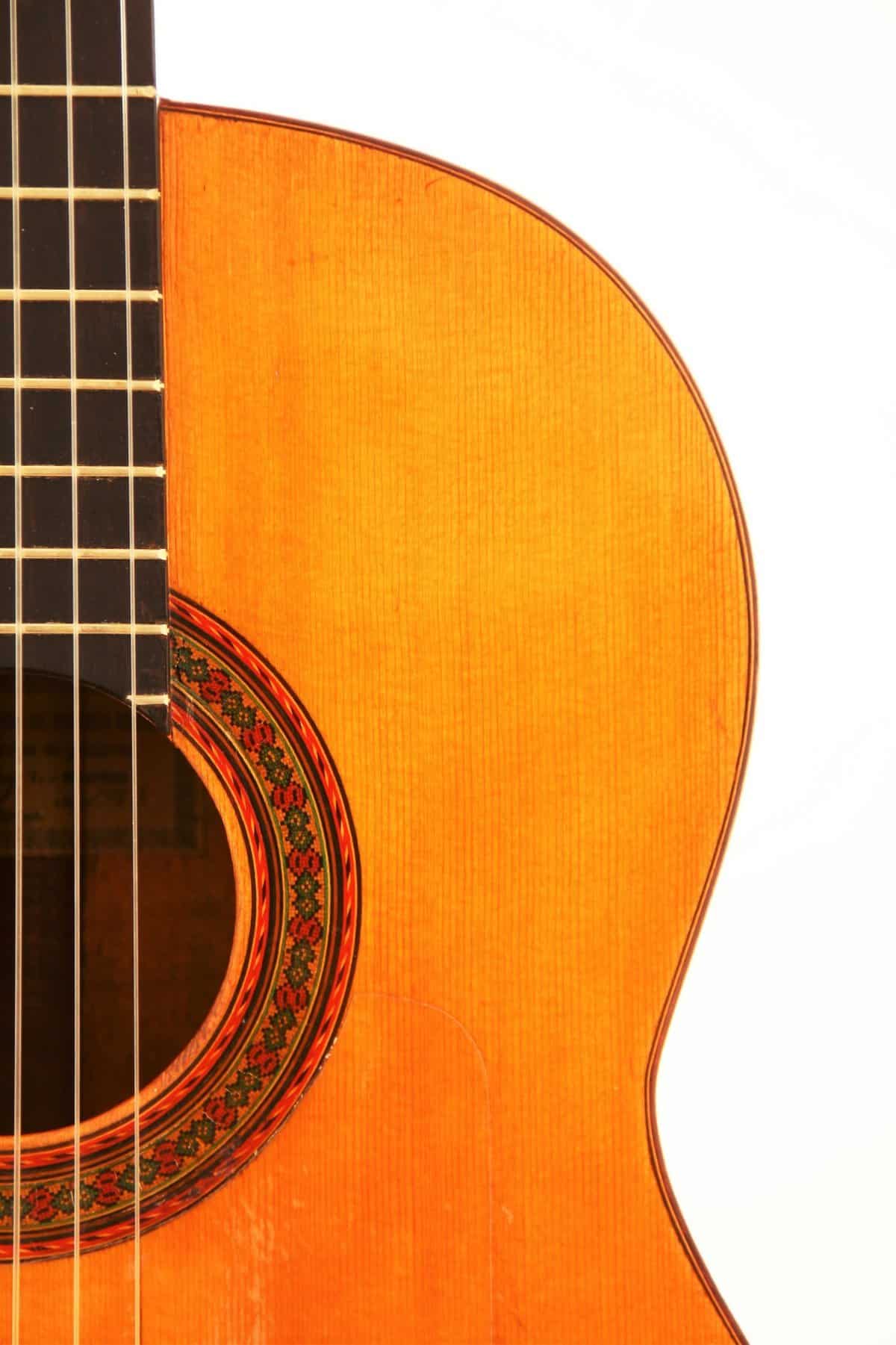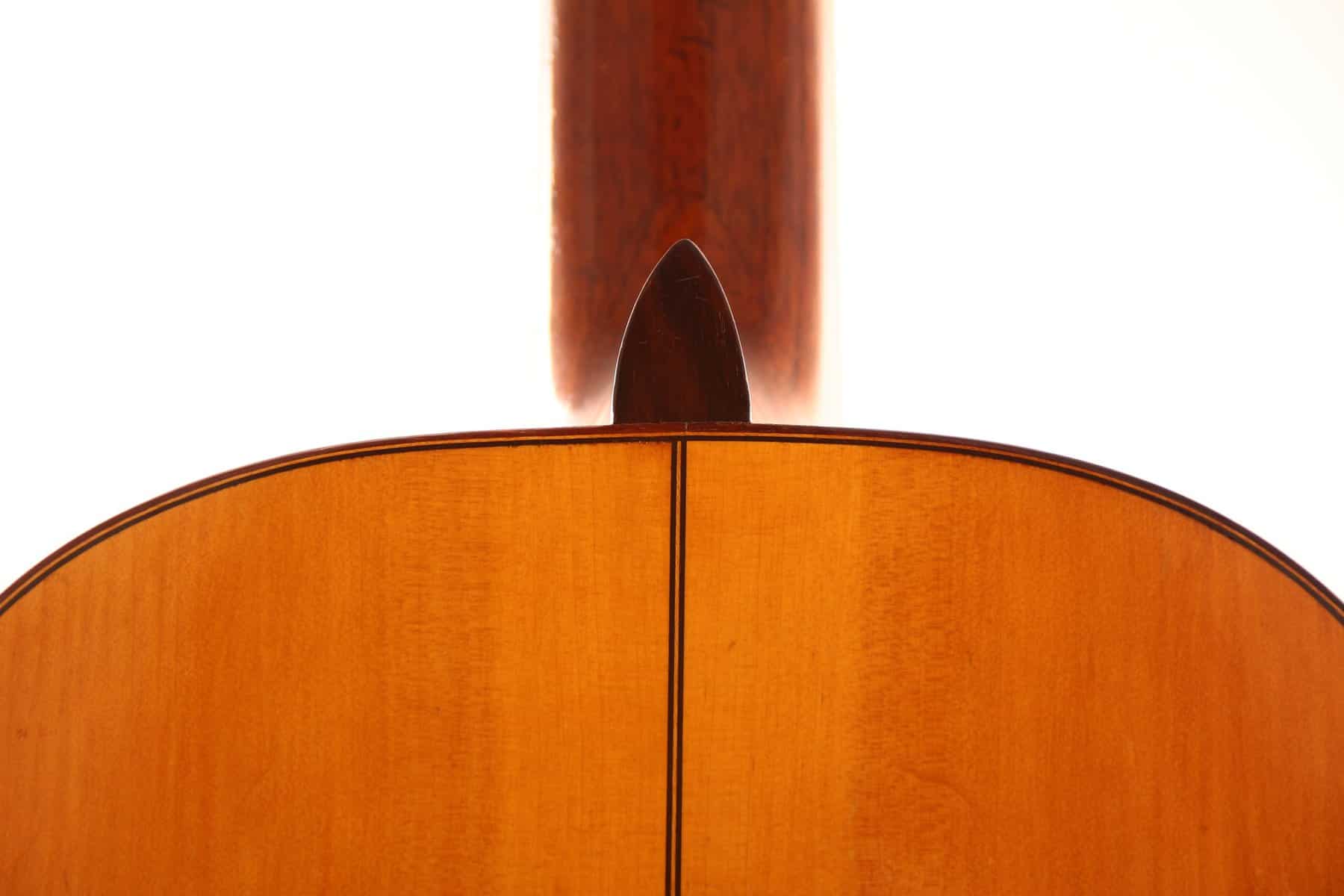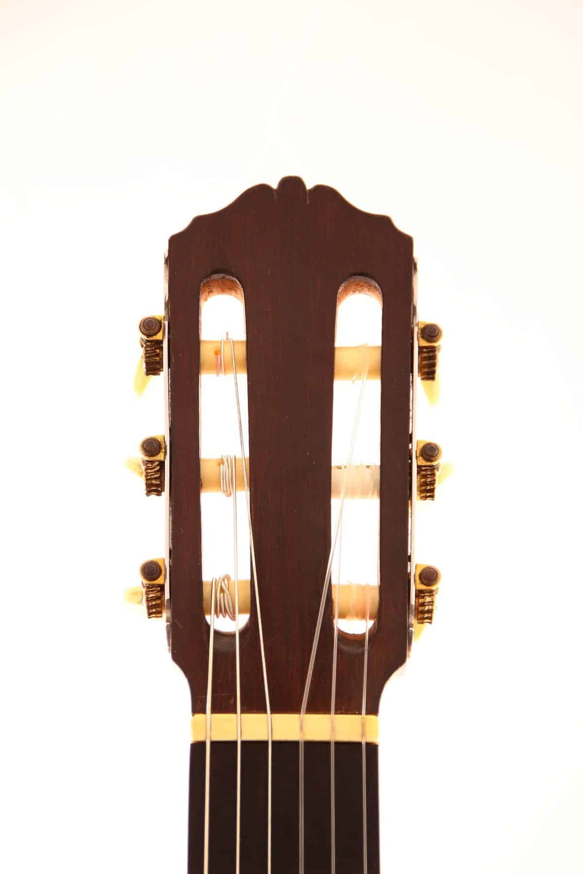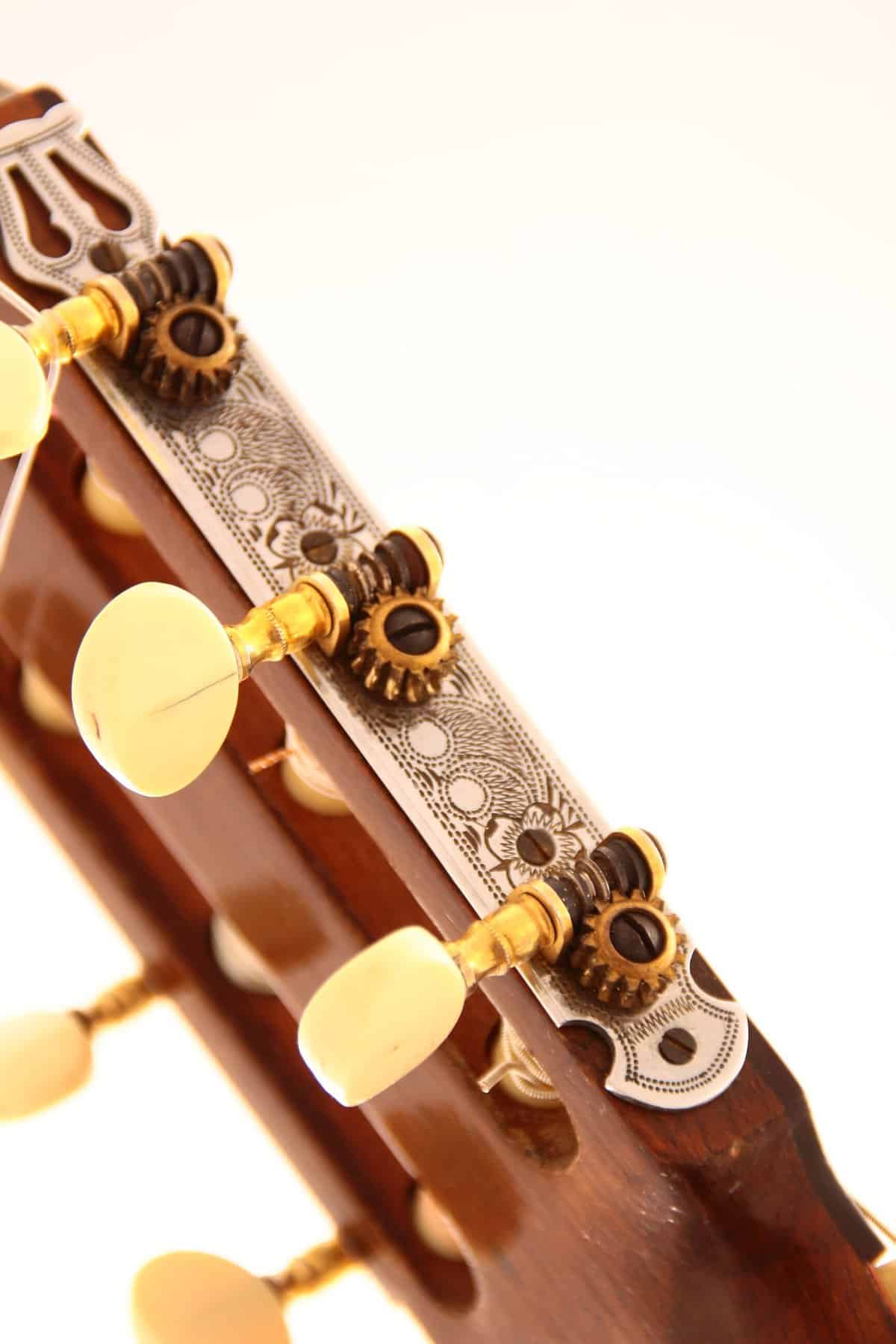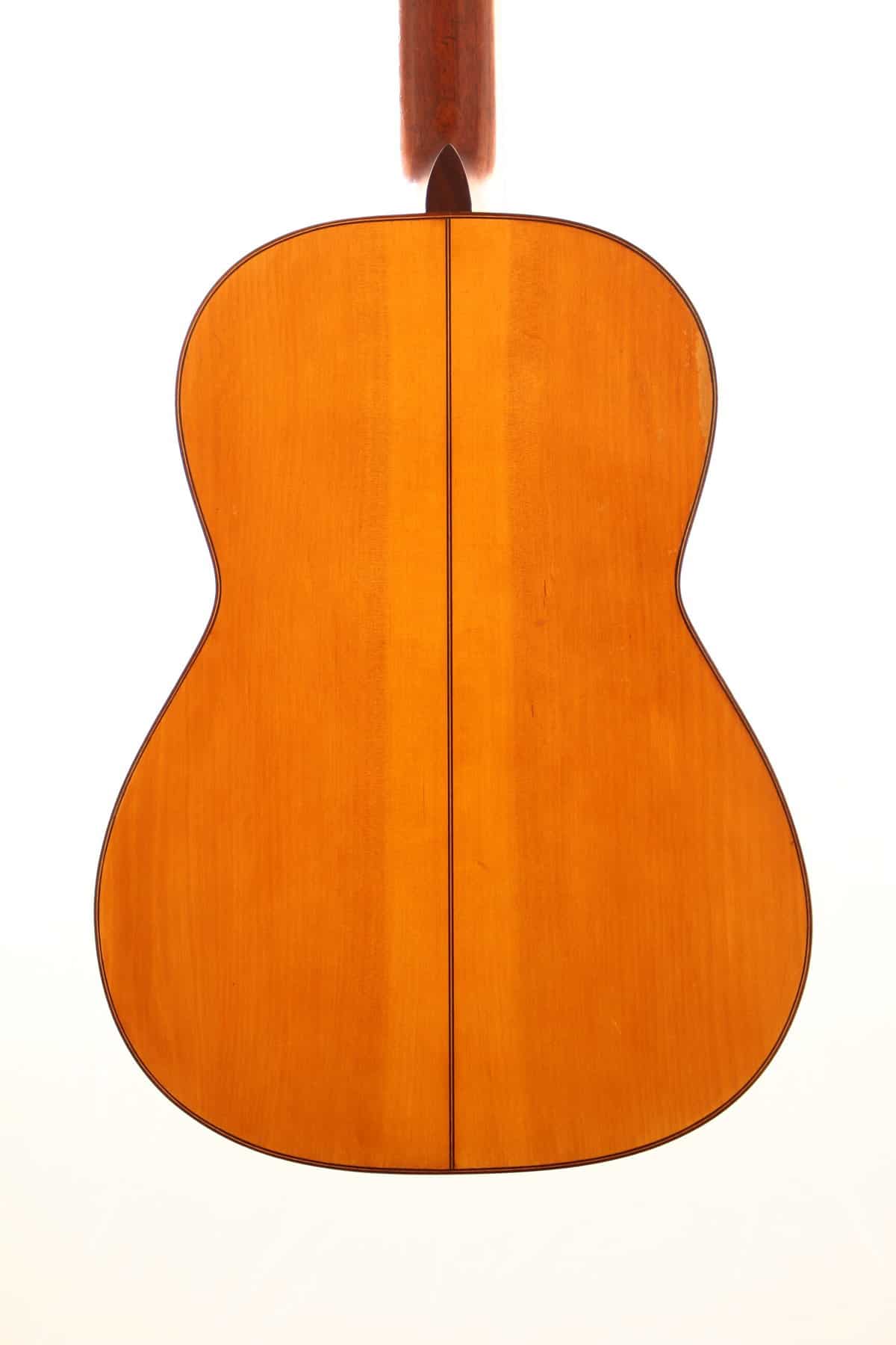 Sie hat einen Zypressenboden und eine sehr feine Decke aus Alpenfichte. Die Mensurlänge beträgt 670 mm und die Sattelbreite 52 mm.