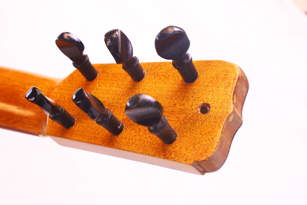 年数が経っているにもかかわらず、ギターのコンディションは驚くほど良く、軽いひび割れが数カ所あるのみで、音色や構造的な完全性に影響を与えるようなものはない。オリジナルの木製チューニングペグはよく動くが、希望によりウィットナーの機械式ファインチューニングペグを取り付けることもできる。透明で取り外し可能なピックガードが付属する。.