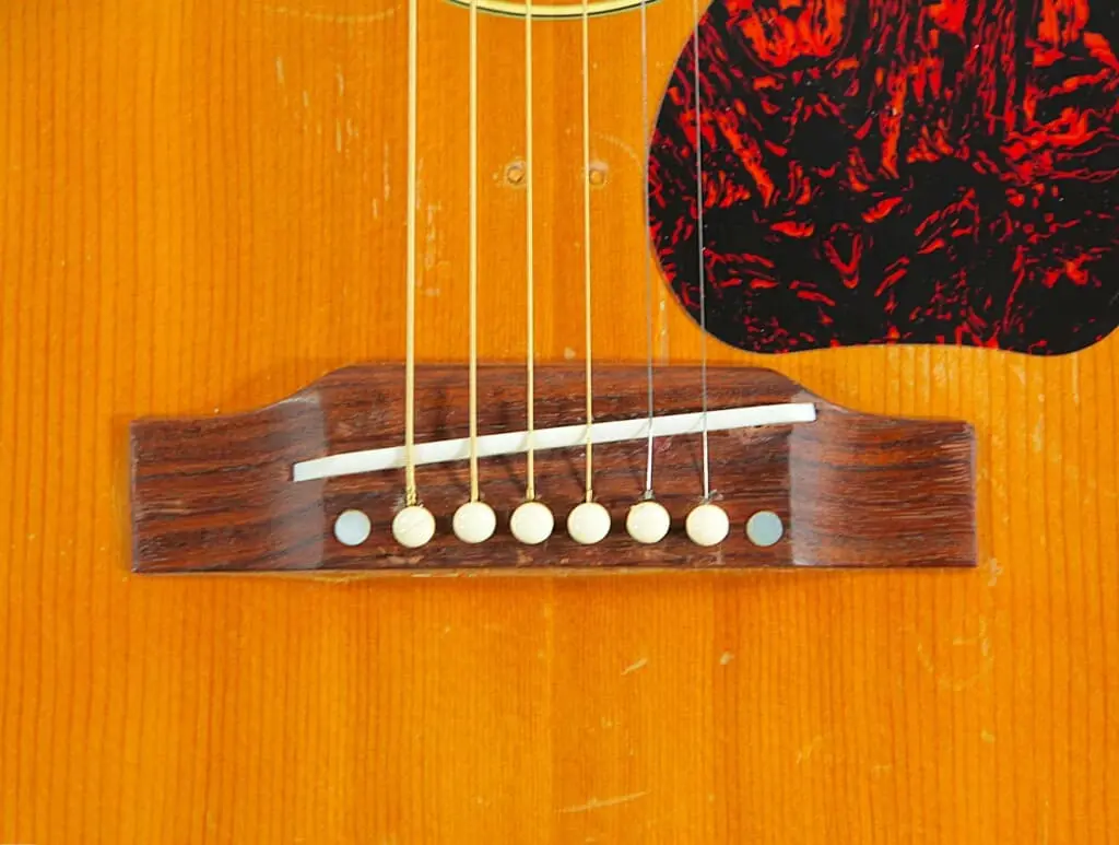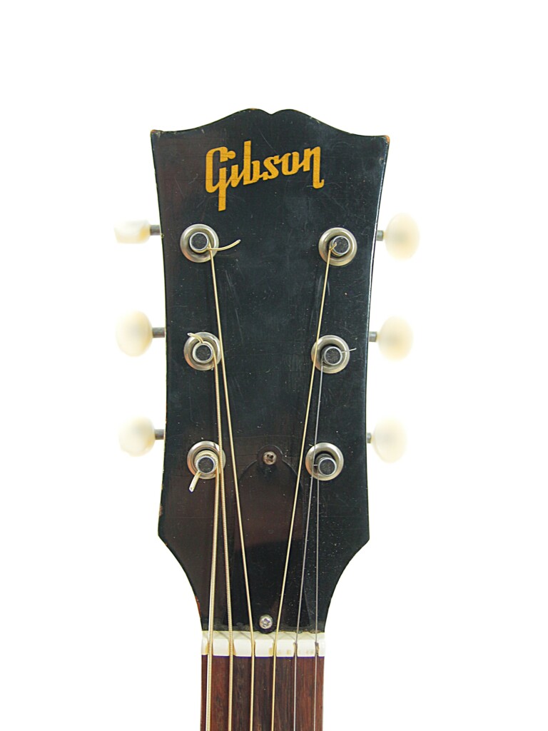 As you can see in the pictures this Gibson J-50 1952 acoustic guitar has a very nice vintage look. It is in great and original vintage condition – with some marks from a removed screwed pickguard and a small repair. The tuners are vintage style replacements.