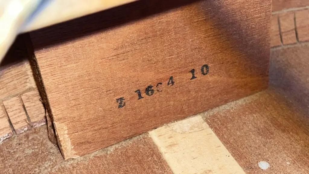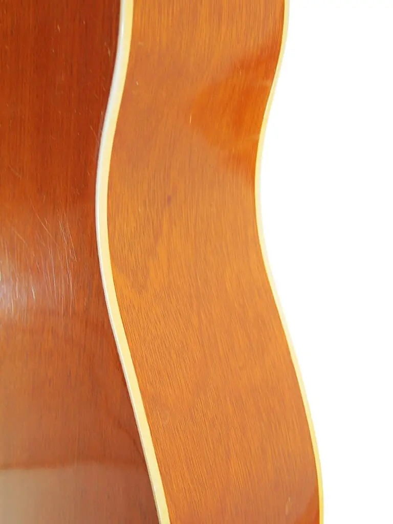 It plays perfectly and is wonderfully adjusted. Low action, straight neck – it had a neck reset. The nut width is 43 mm.