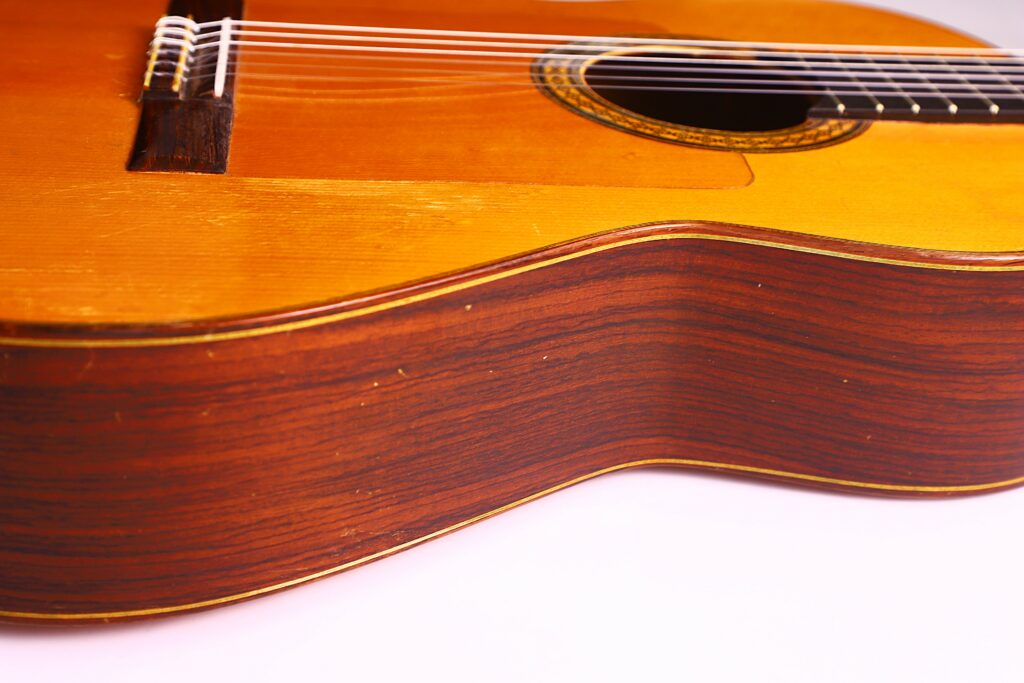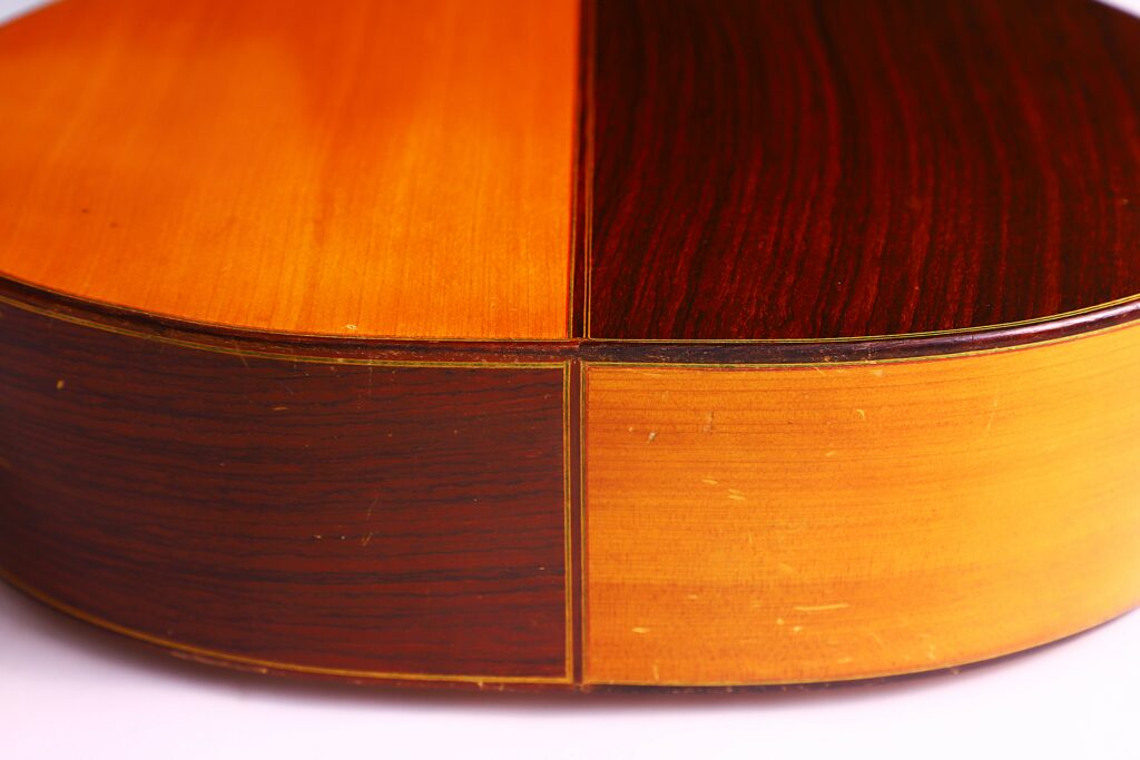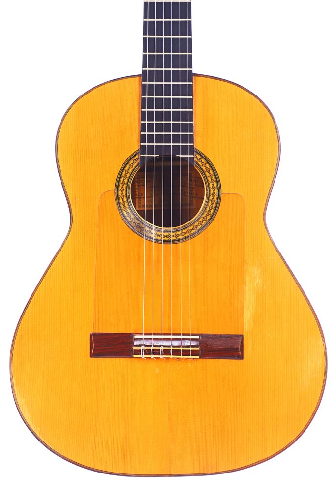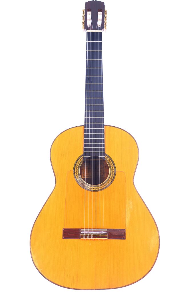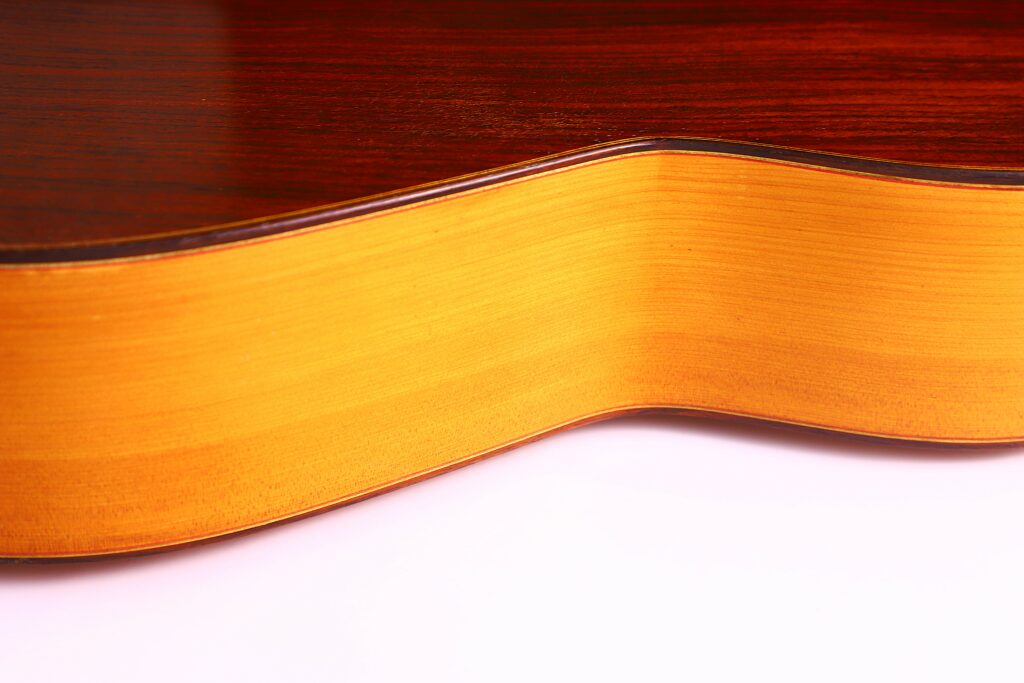This guitar is a rare and special flamenco model, as it has a spruce (top)/rosewood (back)/Cypress (side) construction in the bass range, which gives it very distinctive, clear and powerfull bass tones, while the spruce (top)/cypress (back)/rosewood (sides) construction gives the trebles sharpness and spontaneity.