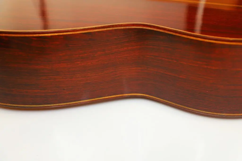 This Antonio Reinosa – Rafael Moreno 1979 Classical Guitar is in excellent condition for its age, showing only minimal signs of play. It has been well cared for and retains all its original components, including the tuners, bridge, and finish. There are no cracks, repairs, or structural issues. It comes with a new hard case, which provides reliable protection and reflects the guitar’s authenticity and historical value.