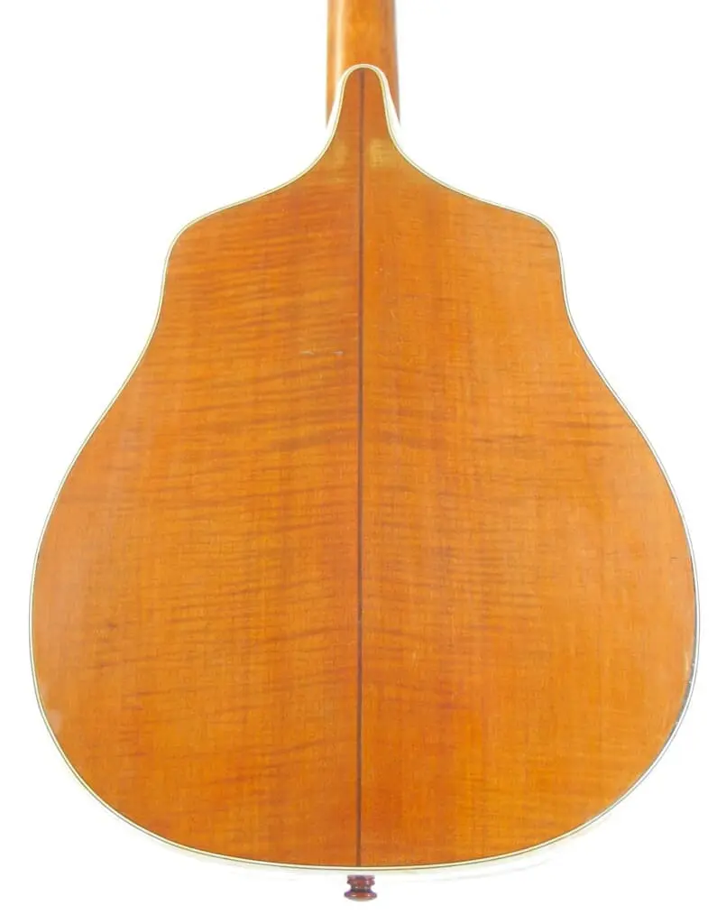 The guitar has a fine spruce top and beautifully flamed maple for back and sides. The woods are of first class quality.