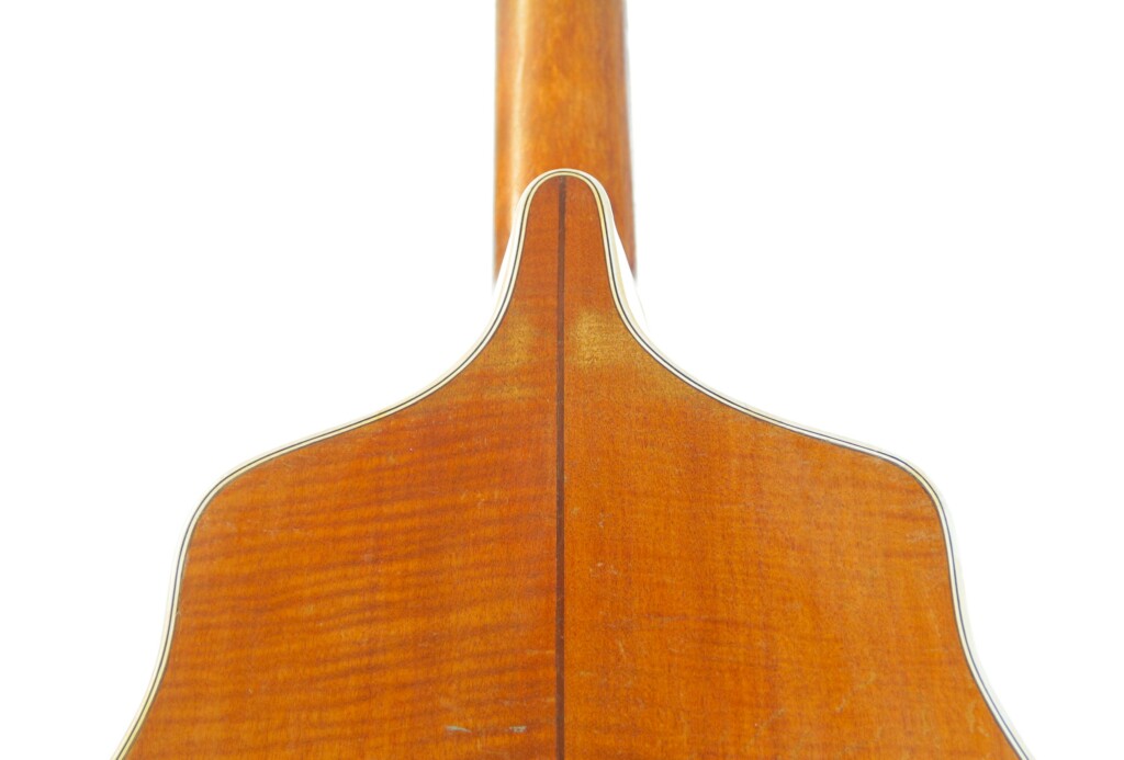 Guitars in coat of arms shape have a long tradition in Central Europe. Besides their impressive appearance, they also allow the player to easily reach the lower registers of the fingerboard.
