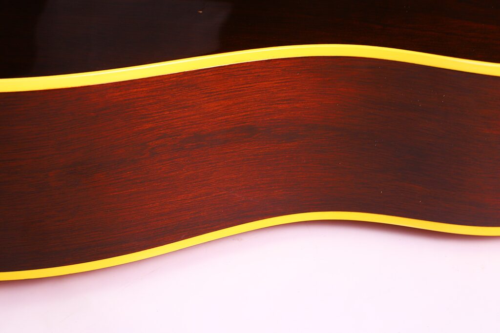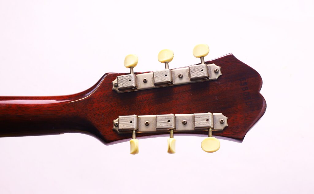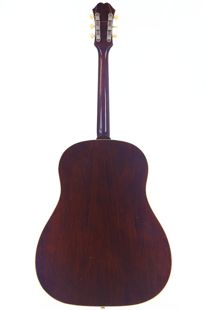 After Gibson purchased Epiphone in 1957 and moved production to Kalamazoo, Epiphone acoustics from this era were built with the same materials, craftsmanship, and construction methods as Gibson guitars — only with subtle design differences and the Epiphone branding. Many musicians of the era, including McCartney, Peter Frampton, and even Jimi Hendrix, embraced these guitars for their distinctive sound and superb playability.