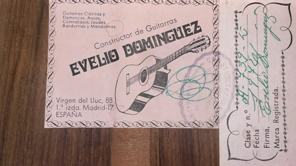 Evelio Dominguez (1930 – 2015) was a skilled luthier known for his meticulous craftsmanship and deep understanding of classical guitar construction. Born in Cuba he began to built guitars, when he was 14 years old. He later moved to Madrid, where he opened his own shop. He has been influenced in his work by Antonio de Torres and Santos Hernandez. He had a good contact to Paulino Bernabe and learned from him as well.