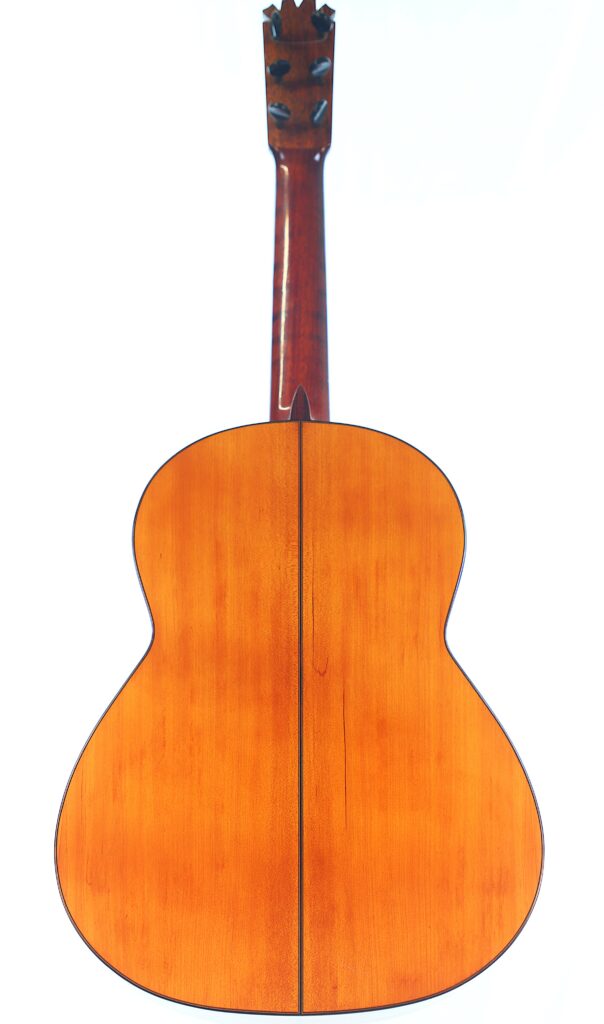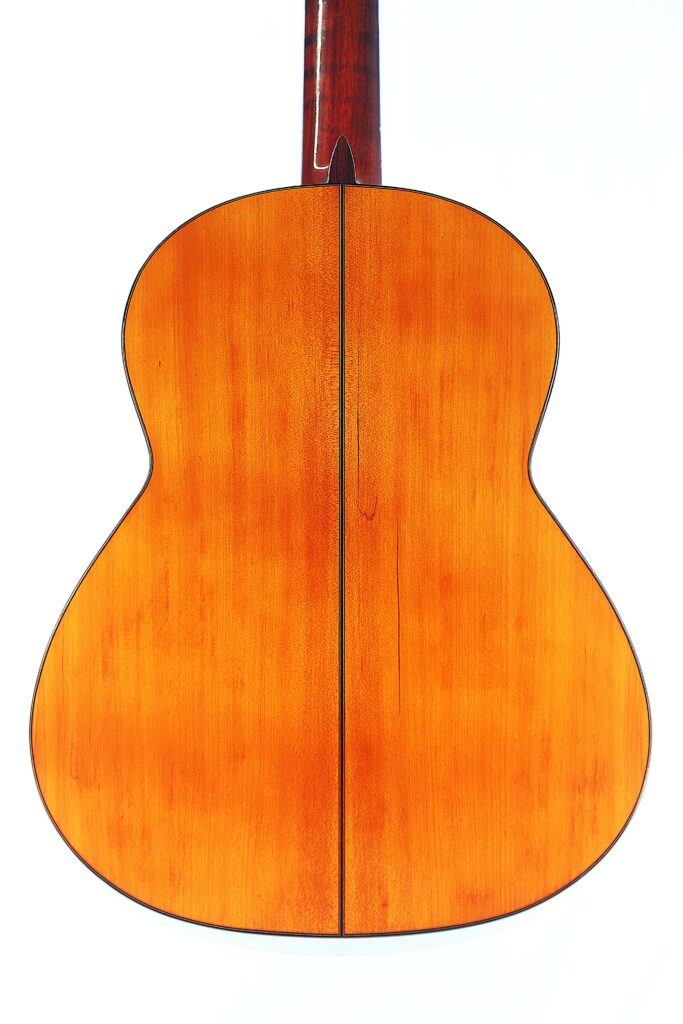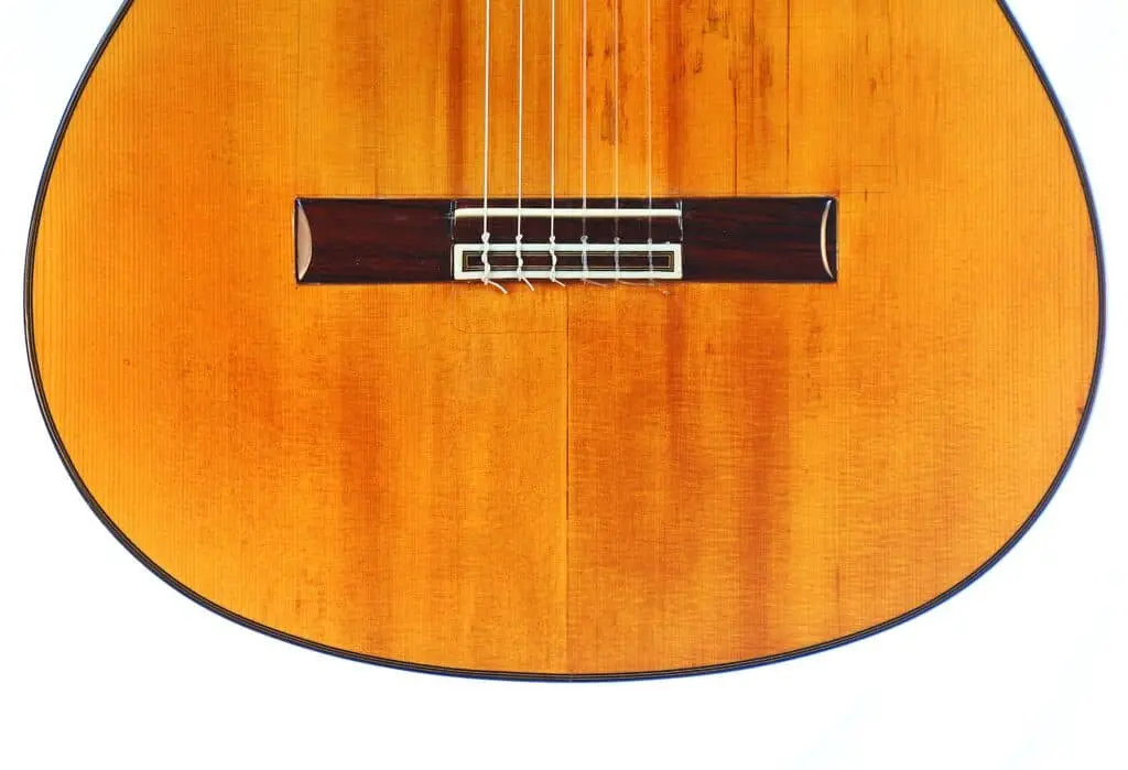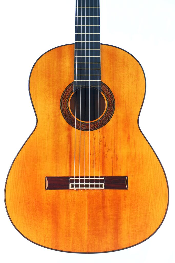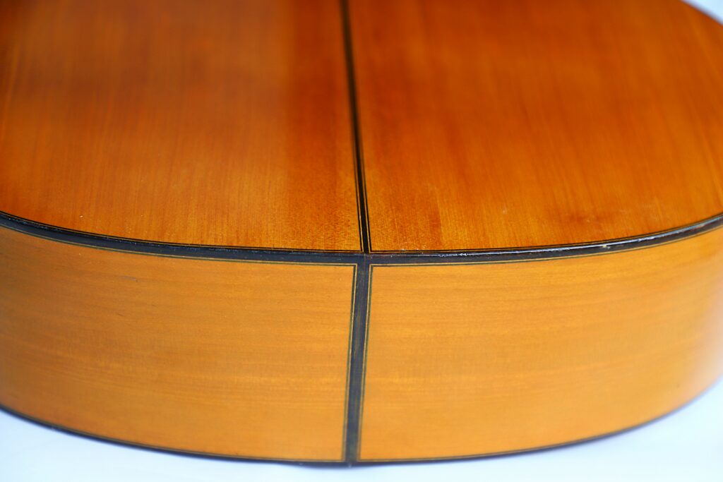 The guitar features a spruce top, cypress back and sides, a 655 mm scale length, and a 52 mm nut width. It has been well-loved and played extensively over the years and has undergone a top-tier professional restoration, ensuring that it is structurally sound and plays effortlessly while retaining its authentic vintage character. It plays very easy with a low action (2.8 mm E and 2.3 mm e at the 12th fret) and a straight neck.