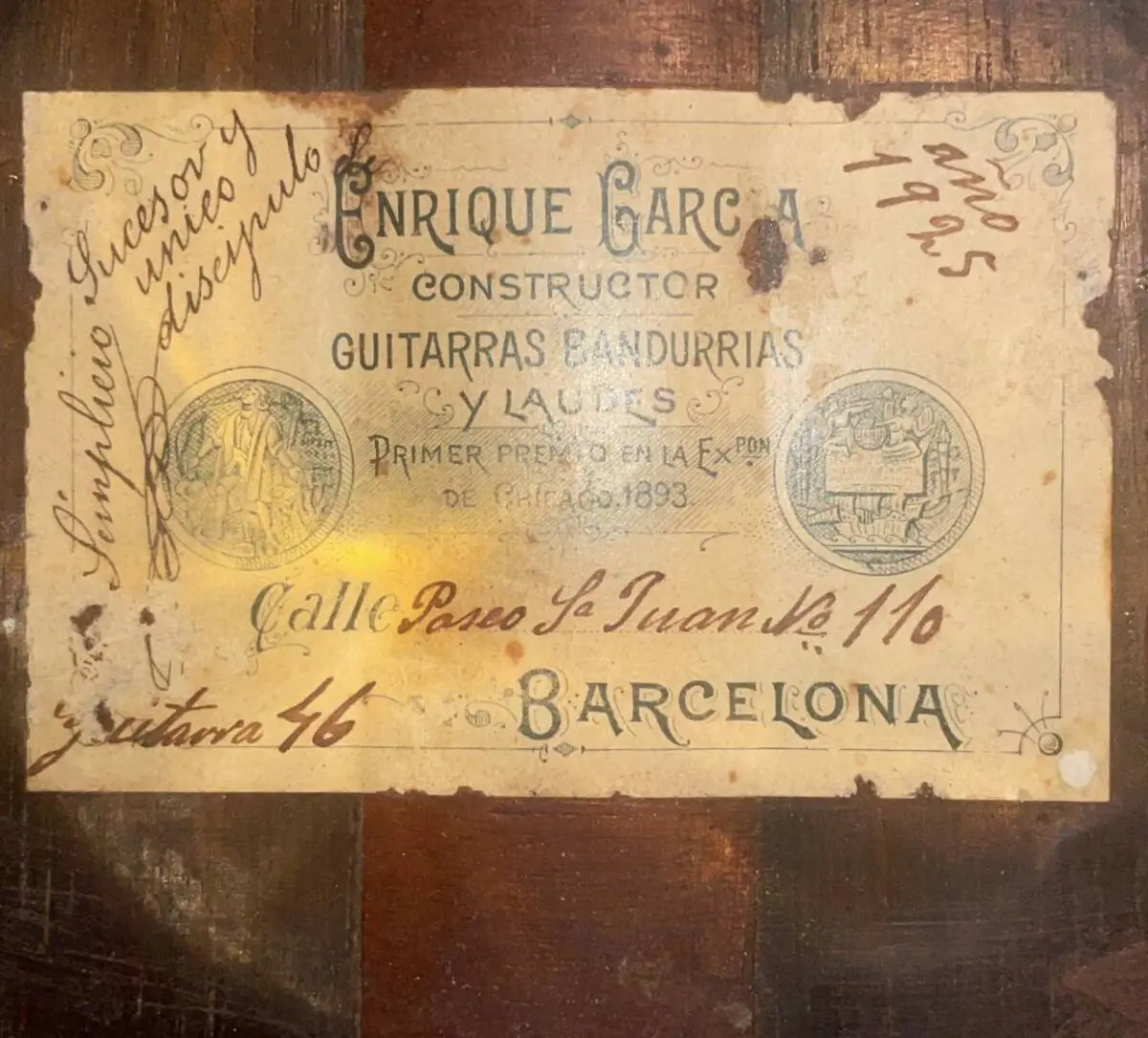 Francisco Simplicio, one of the most respected Spanish guitar makers of the 20th century, was born in Barcelona, Spain in 1874. He first worked as a cabinetmaker and then learned the art of guitar making as an apprentice of the famous luthier Enrique Garcia. When Garcia died in 1922, Francisco Simplicio became the owner of his famous workshop and soon after he won the prestigious prize at the Barcelona International Exhibition.
