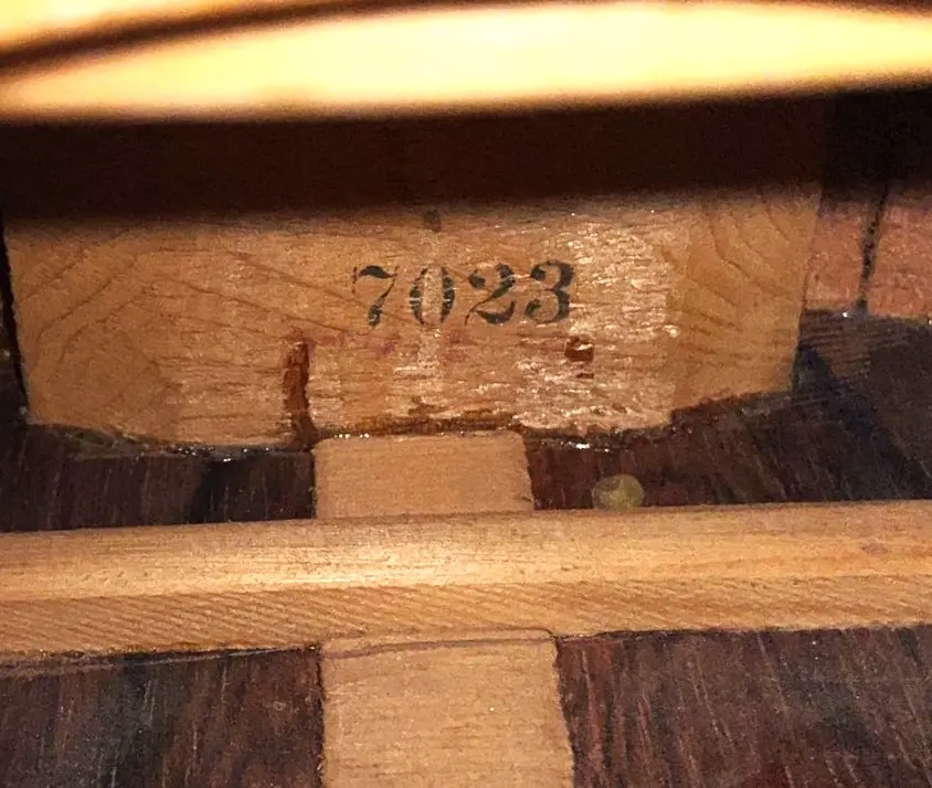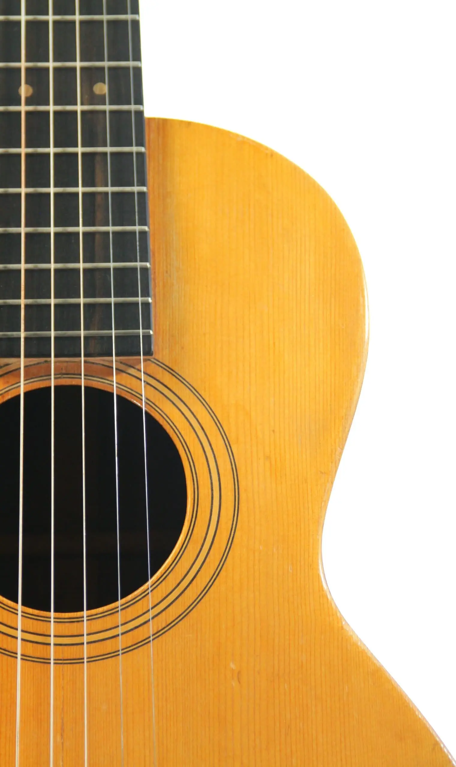 This is a real treat, a parlour guitar from around 1900, with back and sides made of beautiful rosewood. It is built in the style of a Martin Parlour guitar.