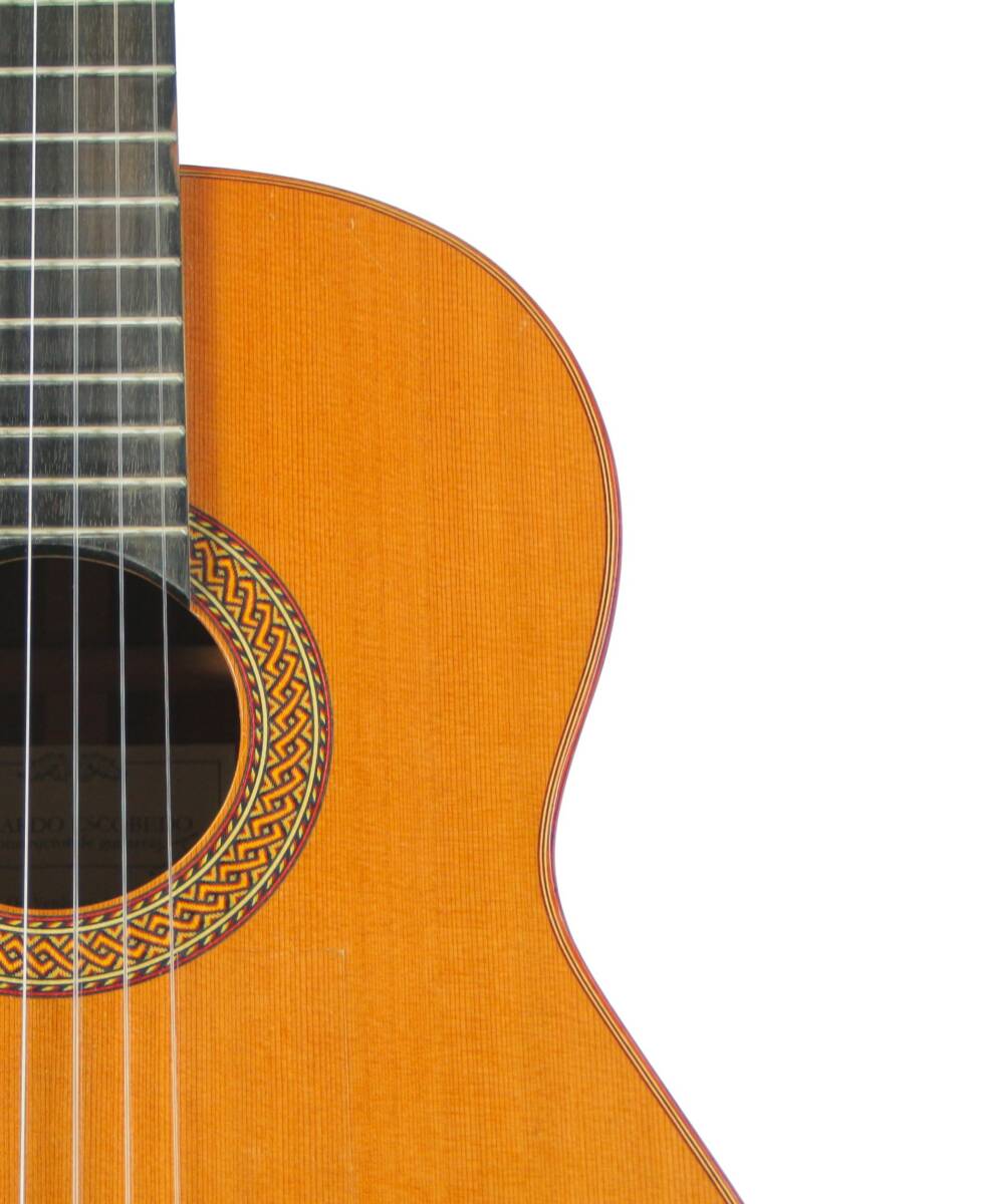 The topof this Gerardo Escobedo 2018 Torres Classical Guitar is made of cedar, the back and sides of beautiful Mexican rosewood. The scale length is 645 mm and the nut width is 52 mm. This guitar is a Torres replica and definitely one of the nicest we have seen.