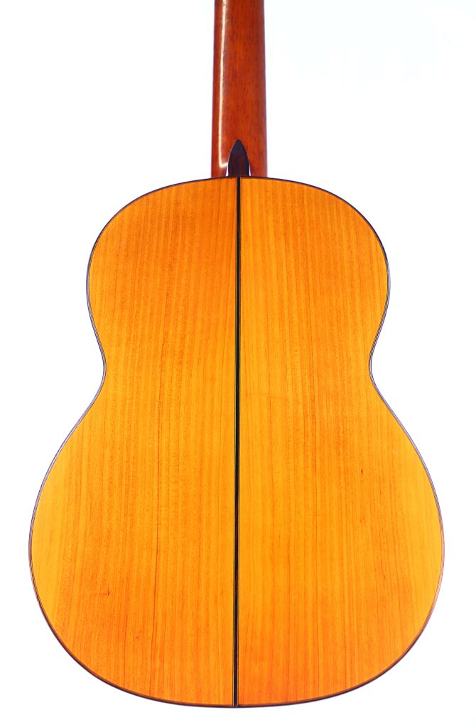 This spruce blanca exemplifies everything a true flamenco guitar should be. It has an incredibly fast response and a powerful, traditional flamenco voice. The tone is clear, focused, and slightly dark in character—deeply Andalusian in its essence. This is no surprise, as Gerundino lived and built guitars in Almería, the birthplace of Antonio de Torres and the cradle of the modern Spanish guitar.