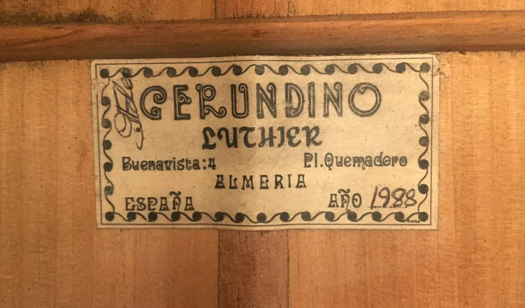 Gerundino Fernandez (1931–2006) is regarded as one of the greatest flamenco guitar makers of the late 20th century, alongside luminaries such as Arcángel Fernández, Francisco Barba, and Manuel Reyes. His instruments have been favored by many top-tier musicians, including Paco Peña, Paco del Gastor, Tomatito, Juan Martín, and even Eric Clapton.