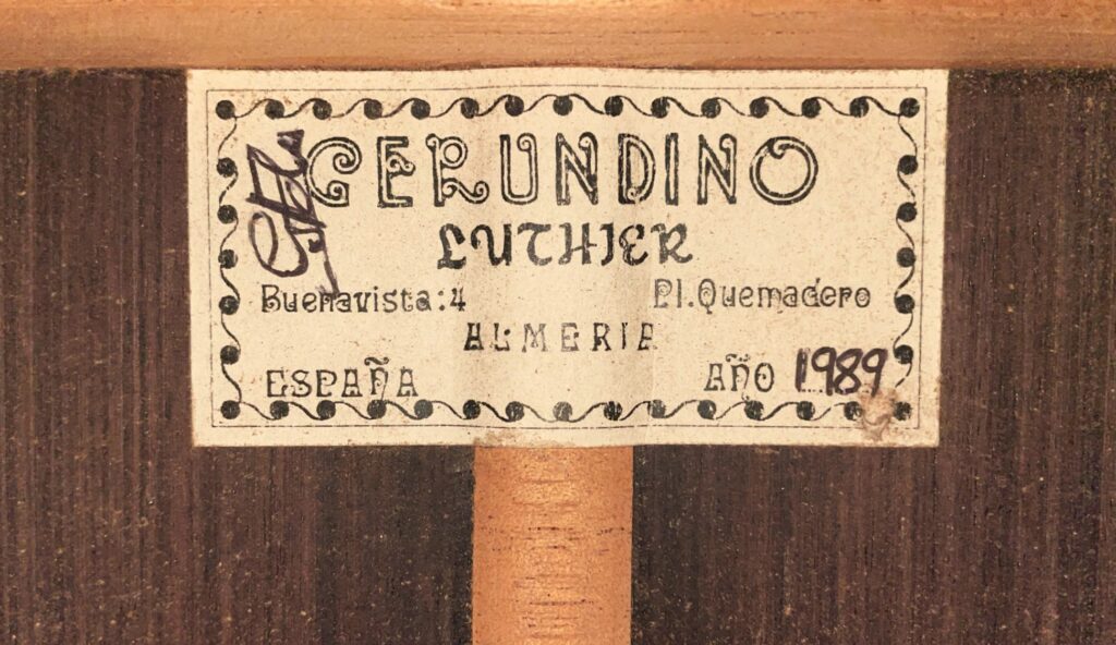 Gerundino Fernández (1931-2006) is widely regarded as one of the greatest flamenco guitar makers of the 20th century. Based in Almería, his workshop produced very few instruments per year, each built with meticulous craft. Many of his guitars are known for their “raspy growl,” outstanding volume, and rich percussive voice. Artists such as Paco de Lucía, Paco Peña, Tomatito, Juan Martín, Vicente Amigo, and even Eric Clapton have played or owned Gerundino Fernandez guitars. His awards (including “Best Acoustic Guitar” at UNESCO contests, etc.) confirm the esteem his instruments hold among flamenco professionals.