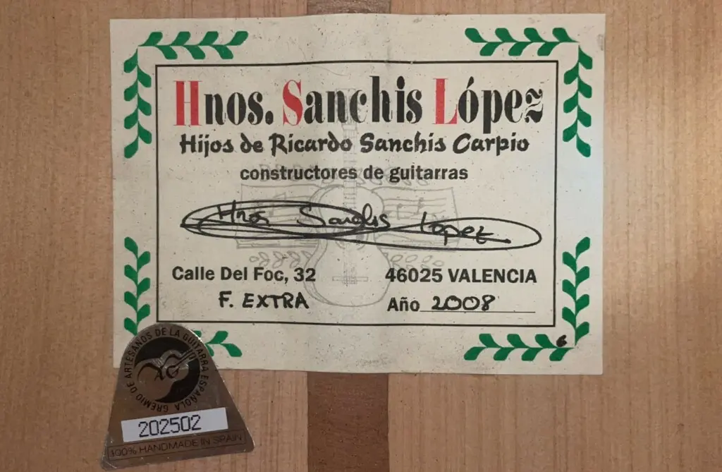 The Hermanos Sanchis Lopez F. Extra 2008 flamenco guitar is a premium handmade guitar that combines rich tradition, exceptional craftsmanship, and breathtaking sound.