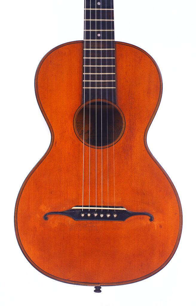 The sound of this instrument is charming, warm, and lyrical, capable of capturing the authentic character of early 19th-century repertoire by composers such as Sor, Giuliani, Aguado, Legnani, Diabelli, Carulli, and Coste. Despite its age, the guitar has remarkable clarity, projection, and sustain, producing a fine concert-level tone rich in color and nuance.