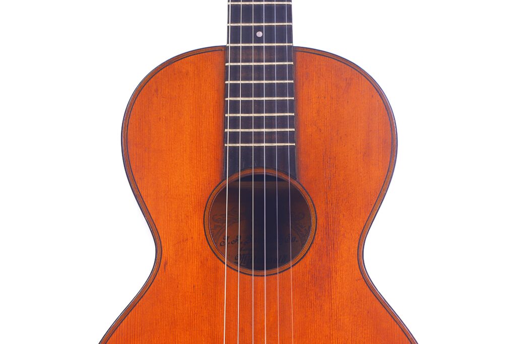 As a product of one of the most important Mittenwald workshops, this J. A. Baader & Co. 1890 Romanic Guitar embodies the long-standing excellence of German instrument making — combining beauty, tradition, and performance in one timeless instrument.