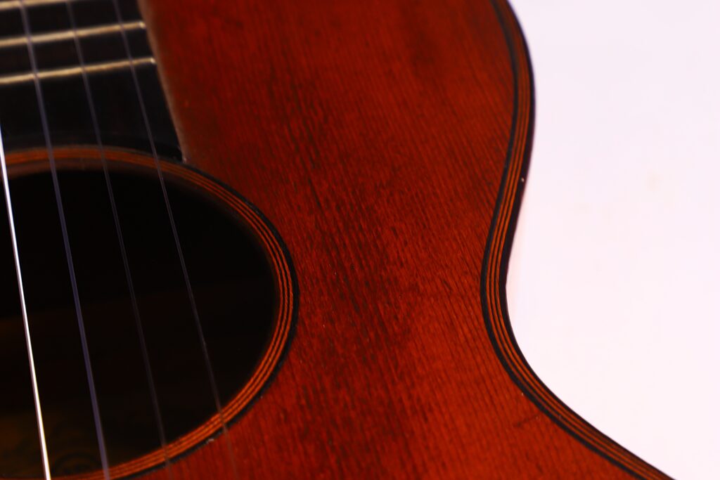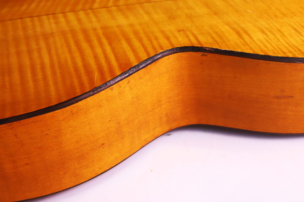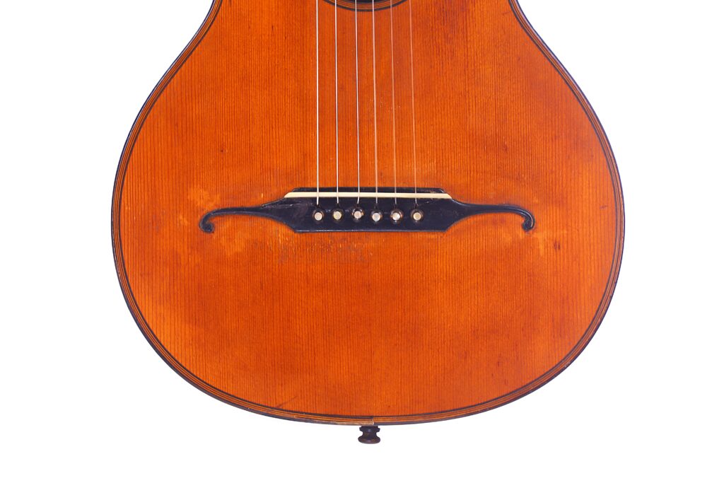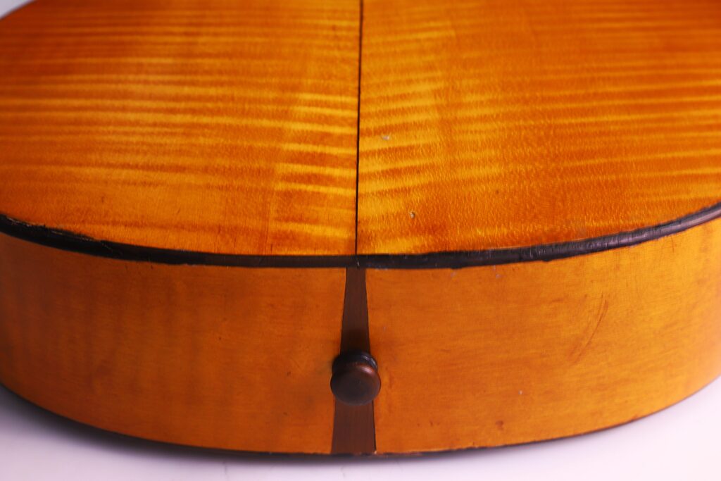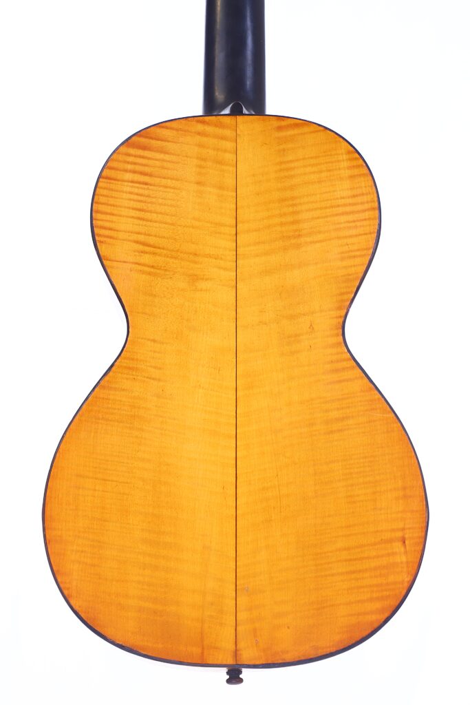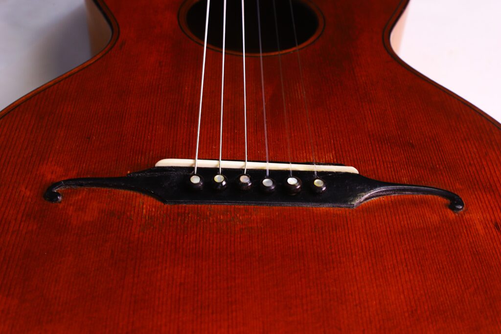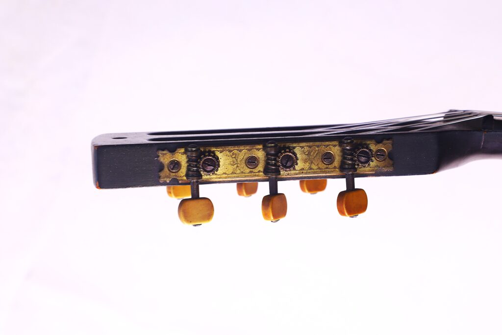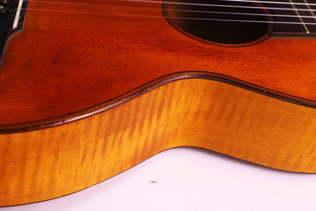 This particular J. A. Baader & Co. 1890 Romanic Guitar reflects the highest standards of Mittenwald’s luthier tradition. It features a spruce top with maple back and sides, a 47 mm nut width, and a 620 mm scale length — dimensions that provide comfort, balance, and responsiveness. It can be dated to around 1890.