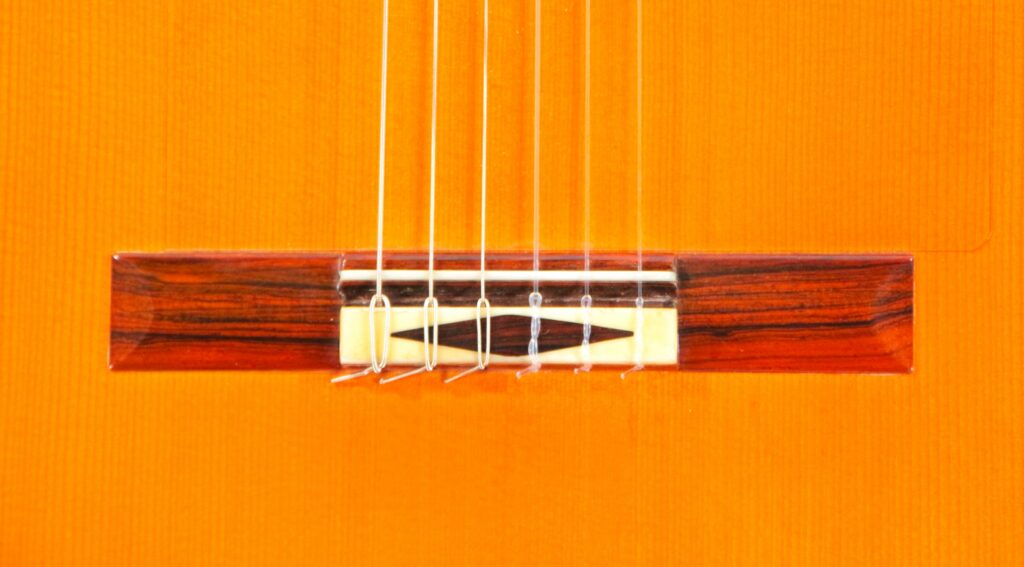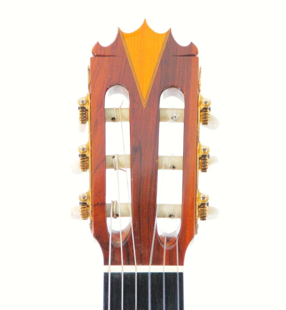 This nice Jose Romero 1996 Flamenco Guitar possess a wonderful and sweet tone. The trebles are clear and concentrated. The basses are firm. The balance between trebles and basses is excellent. It is a very flexible guitar – loud and growling while played hard, but it also sings with the sweetest melodies when played gentle.
