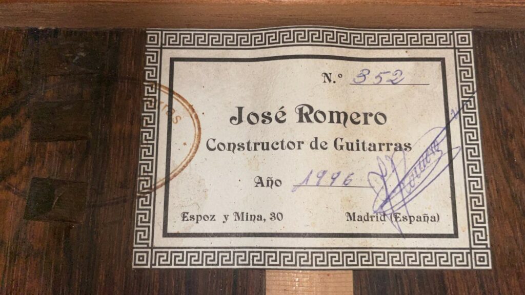 The Spanish luthier José Romero Garrido was born in Baeza (Jaén) April 12, 1954. In 1968, when he was but fourteen, he began his professional career as a guitar maker, entering as an apprentice in the workshop of José Ramirez. There he develloped outstanding skills, became master builder and one of the leading builders in the Ramirez shop.